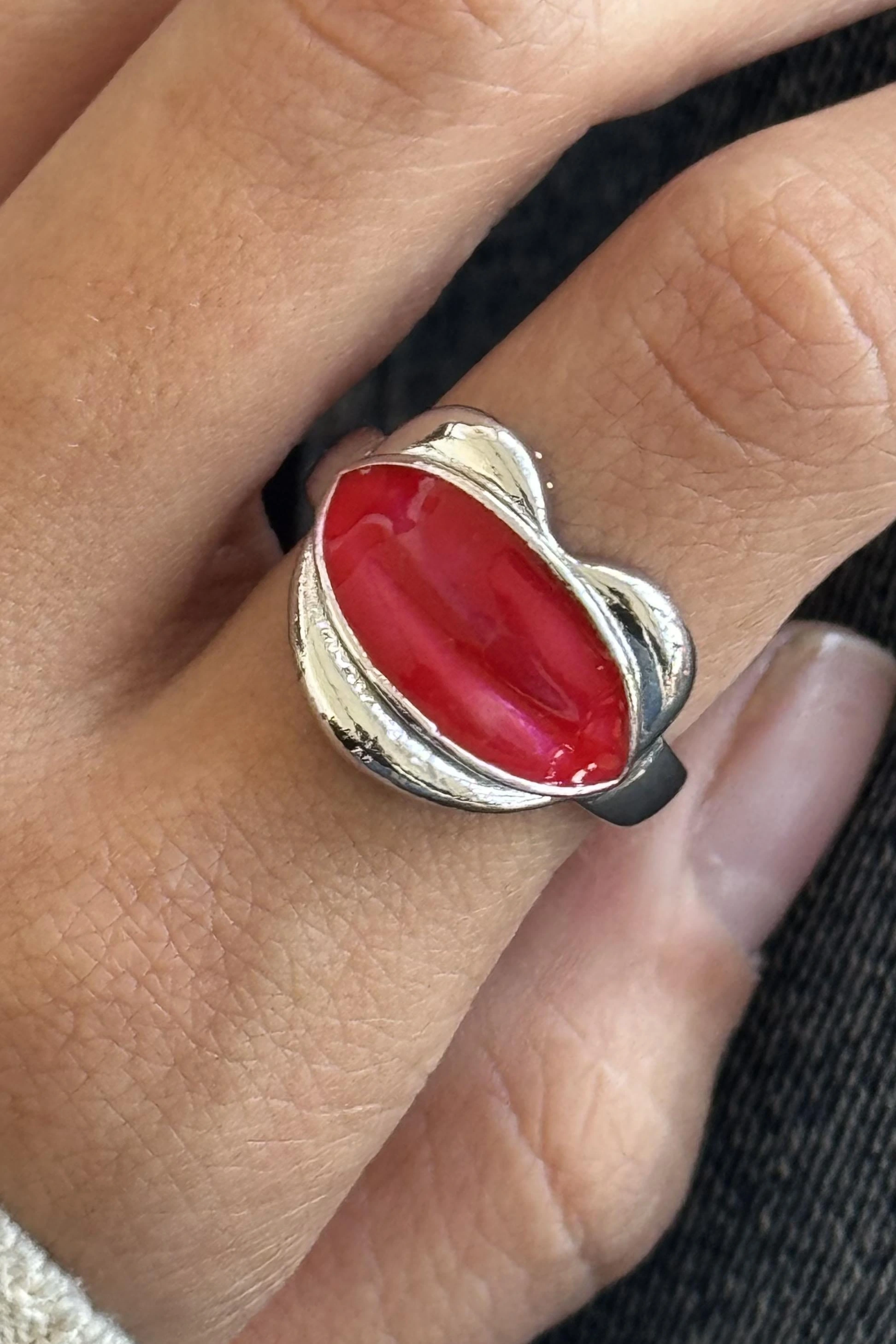 Gümüş Renk Dudak Figürlü Ayarlanabilir Yüzük
