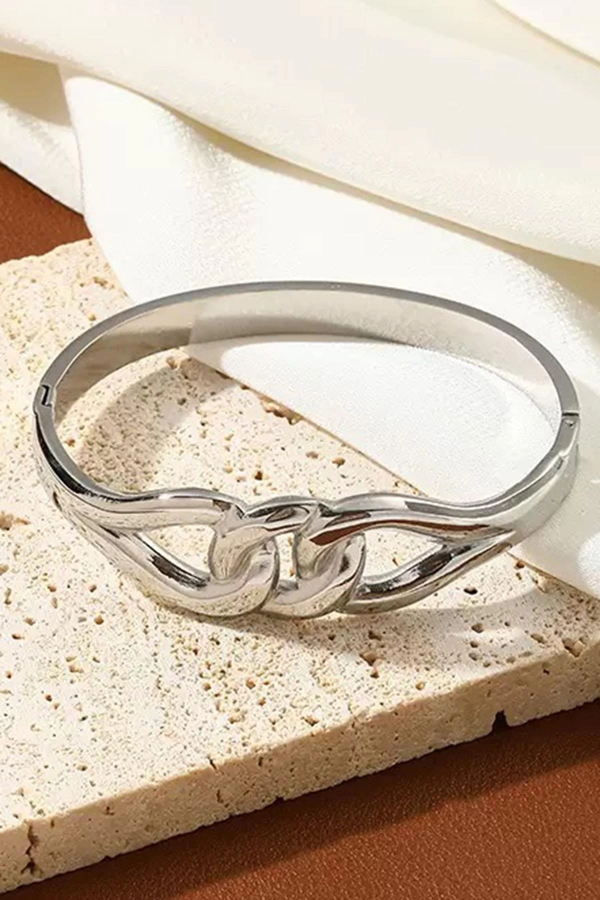 Gümüş Renk Düğüm Figürlü Kelepçe Bileklik