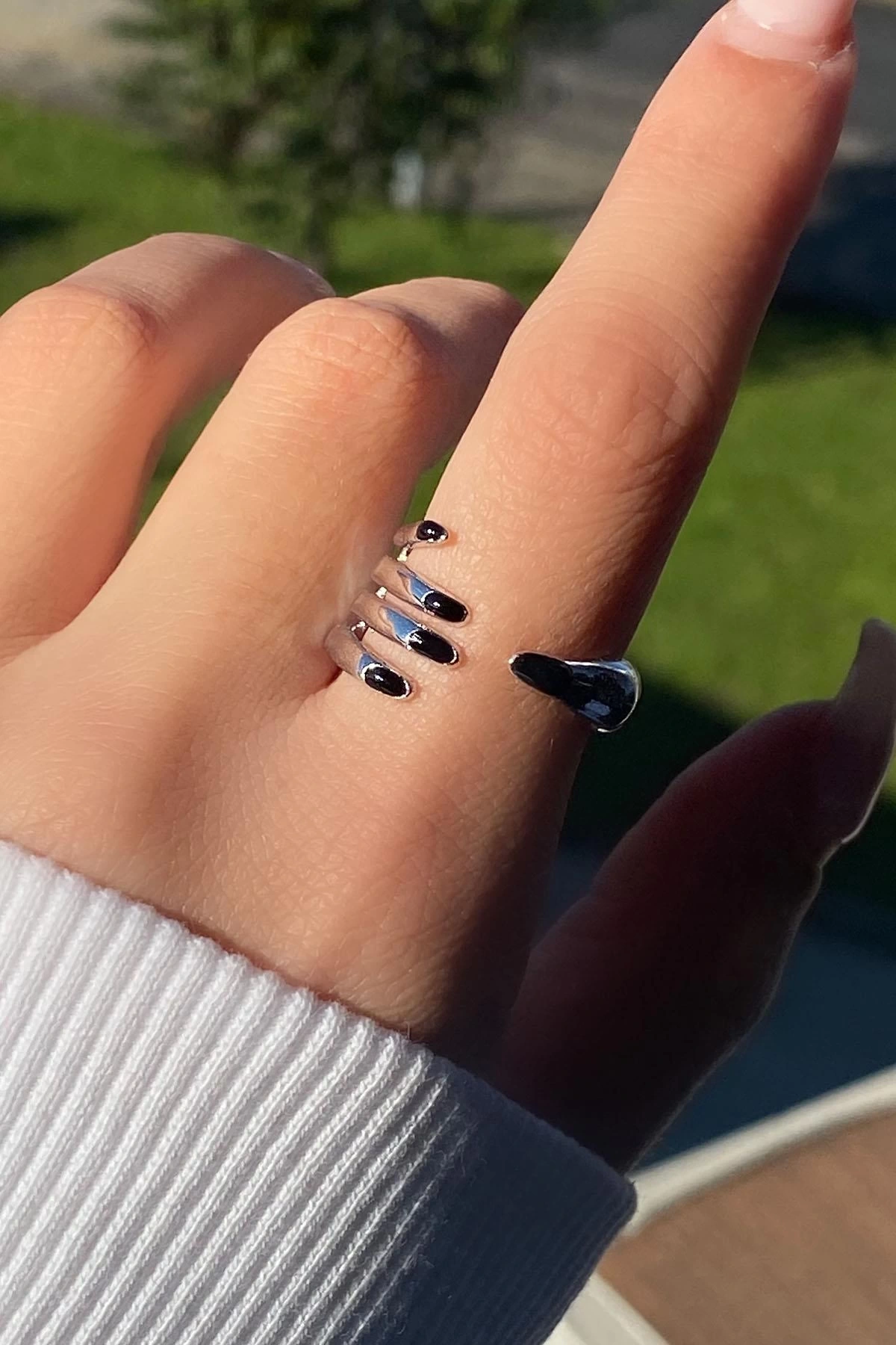 Gümüş Renk Çivi Figürlü Taş Detaylı Ayarlanabilir Yüzük