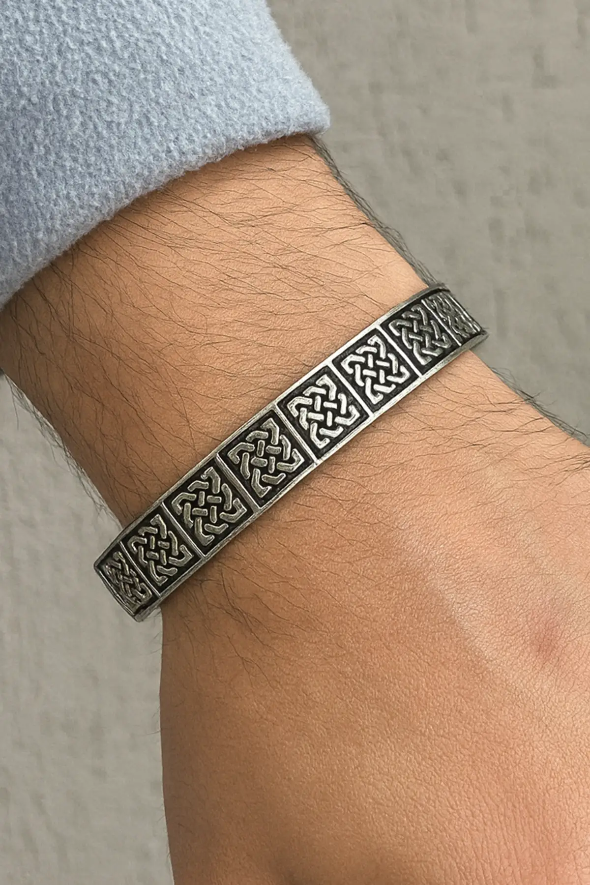 Gümüş Renk Düğüm Figürlü Kelepçe Bileklik