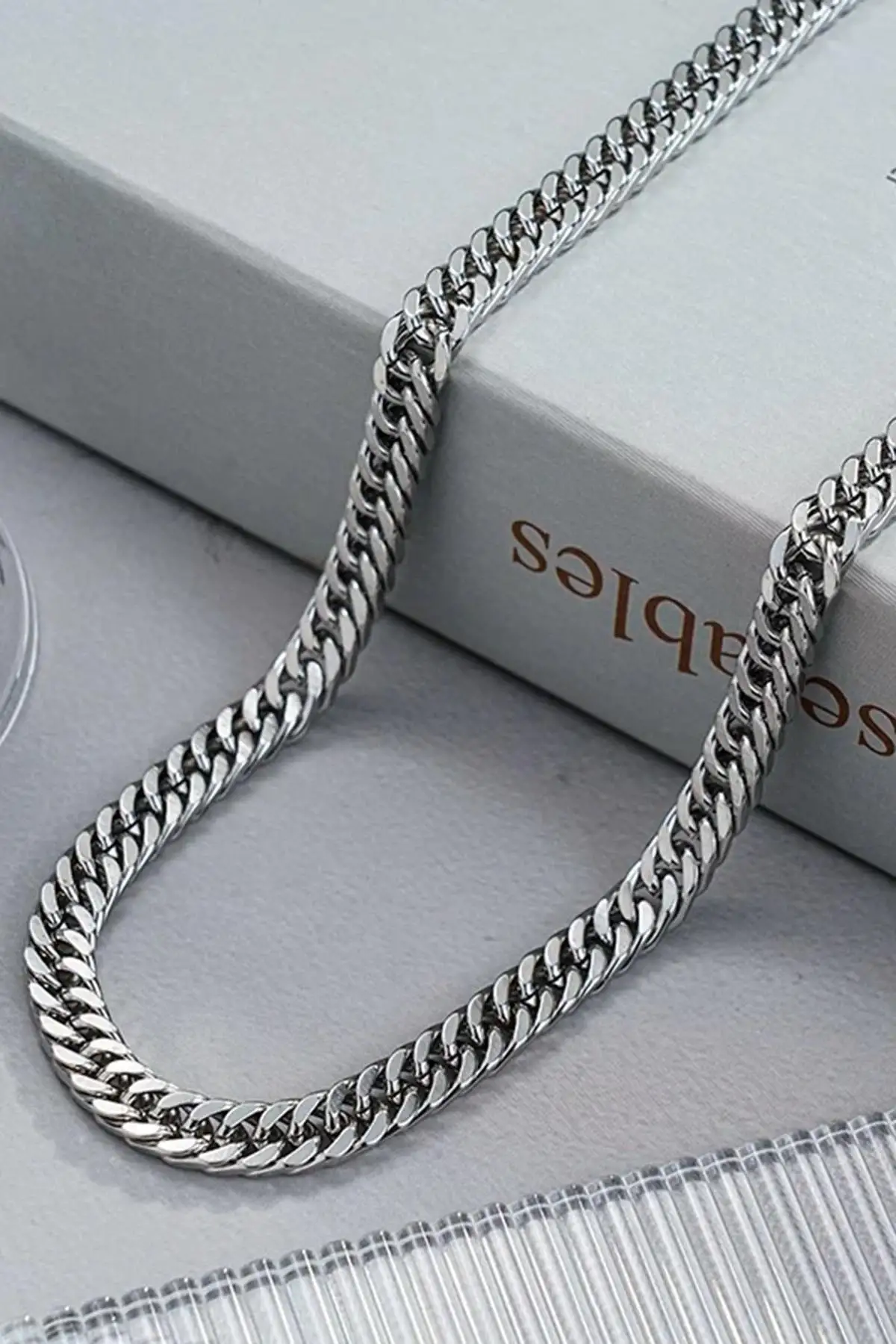 Gümüş Renk Erkek Zincir Çelik Kolye (50cm)