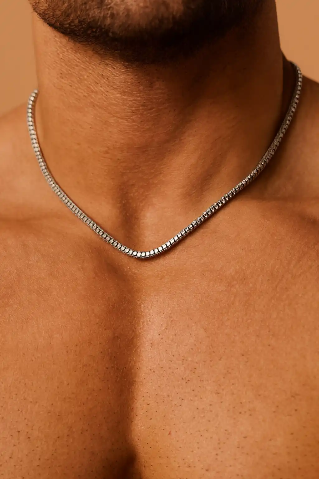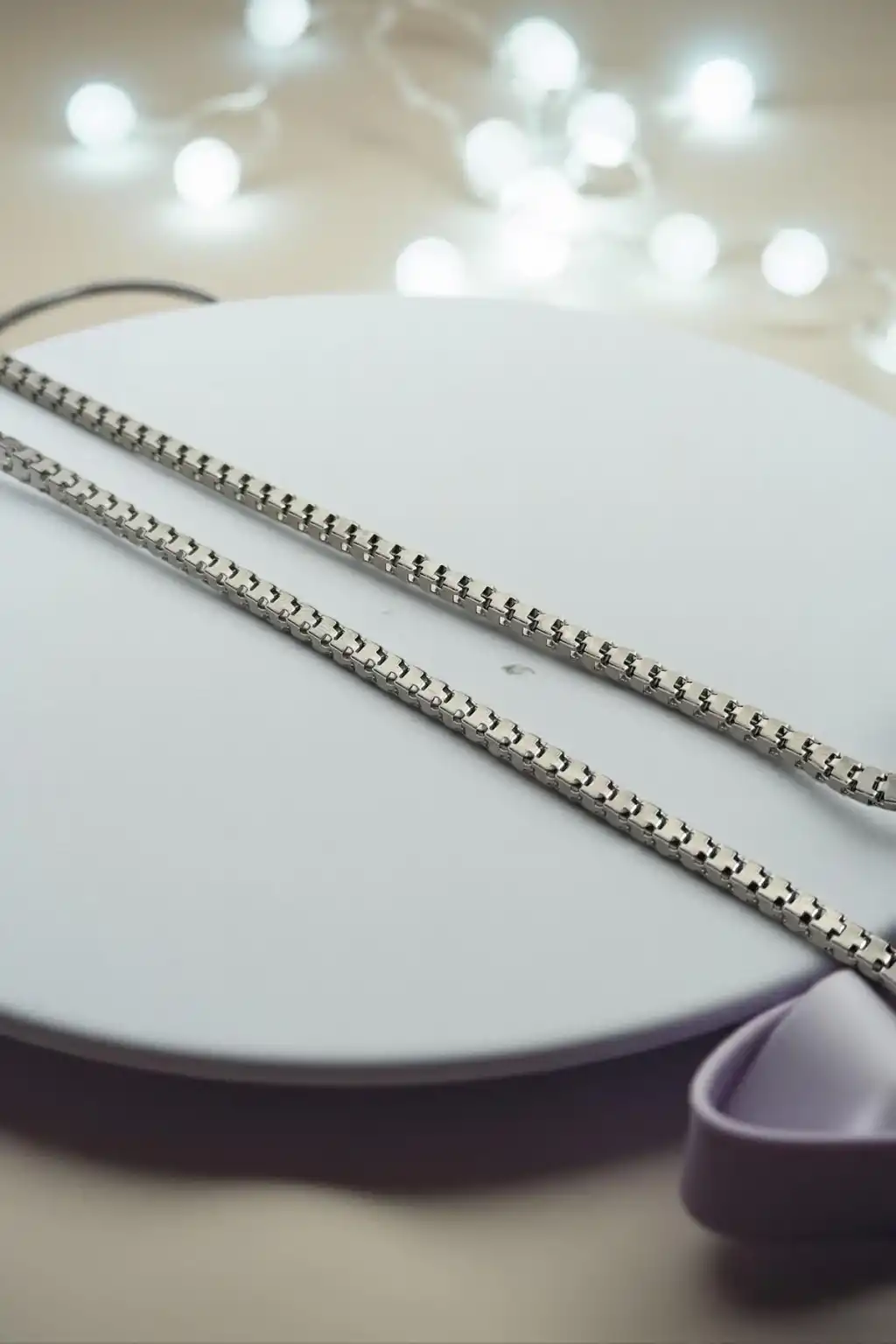 Gümüş Renk Erkek Zincir Çelik Kolye (55cm)