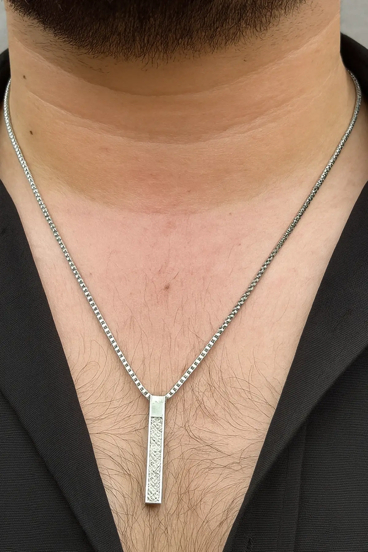 Gümüş Renk Erkek Zincir Çelik Kolye (50cm)