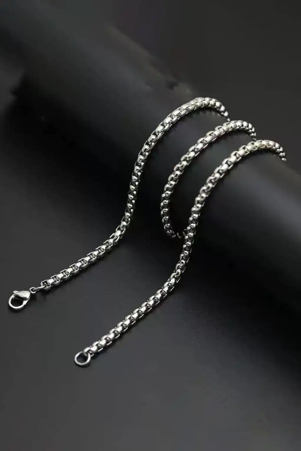 Gümüş Renk Erkek Zincir Çelik Kolye (60cm)