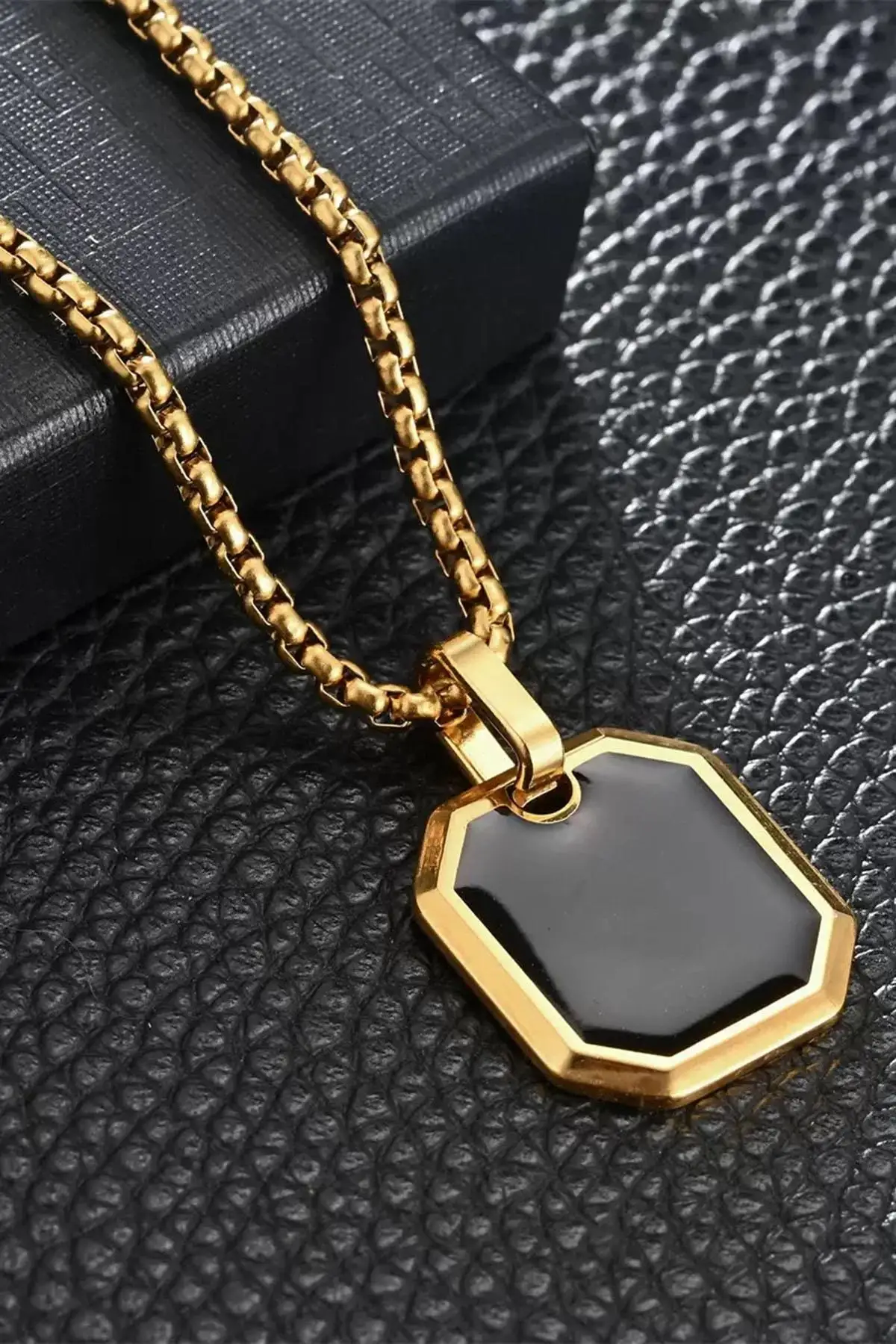 Altın Renk Zincir Detaylı Unisex Çelik Kolye