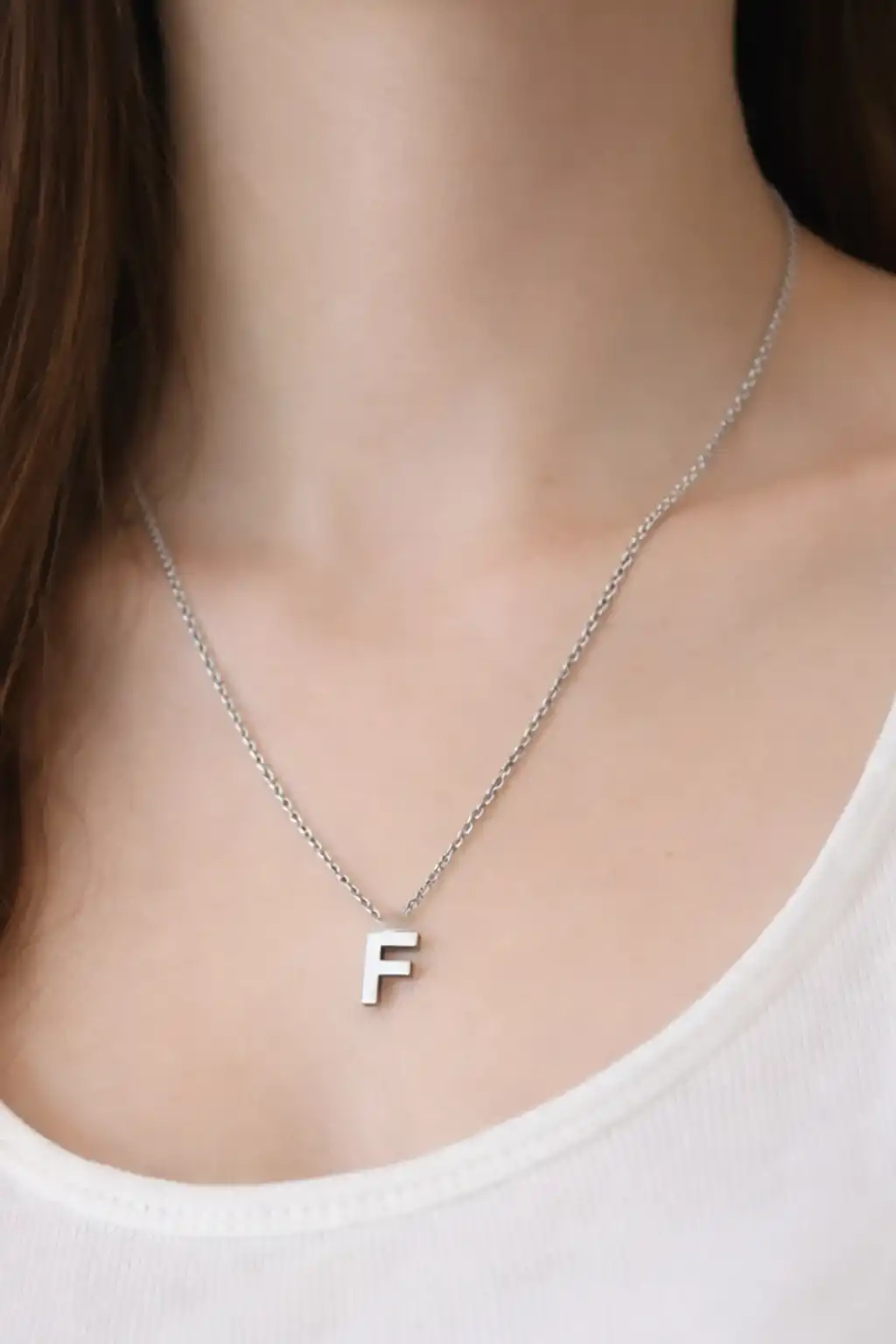 Gümüş Renk F Harf Çelik Kolye