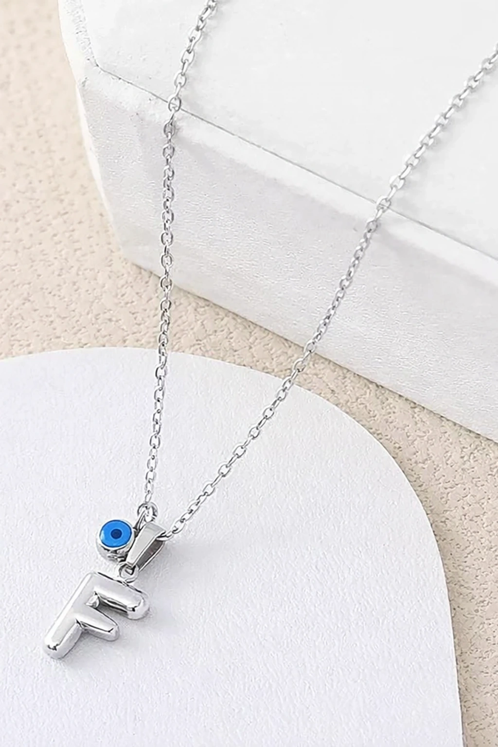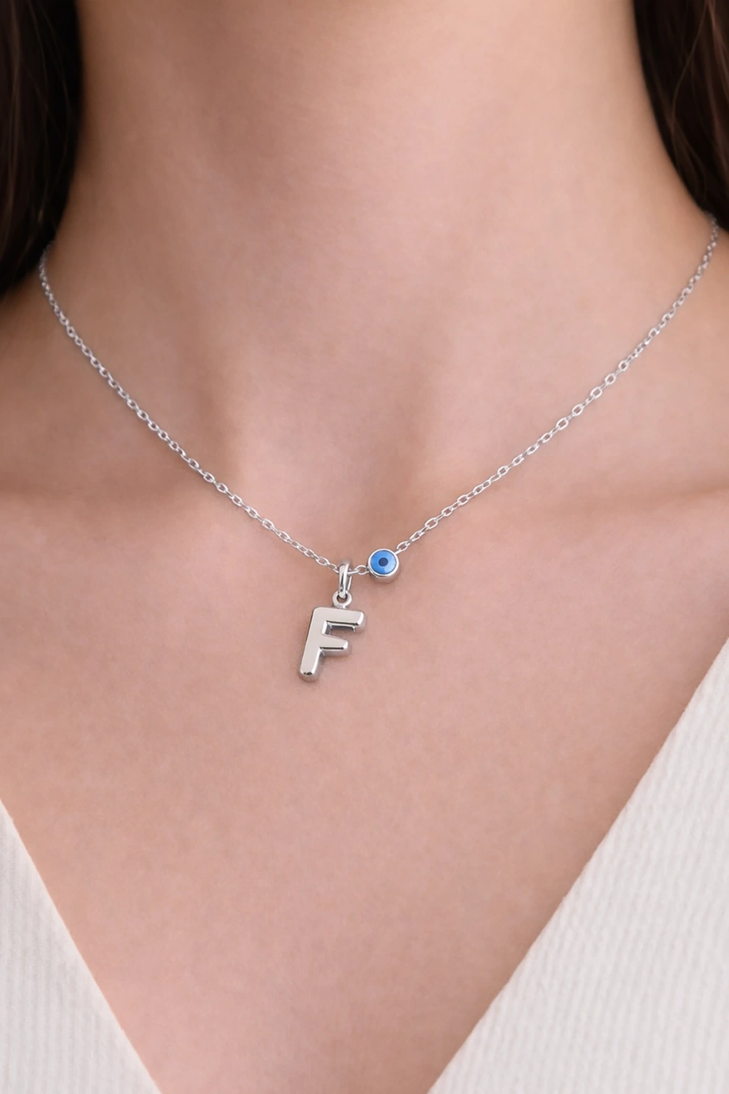 Gümüş Renk F Harf Çelik Kolye