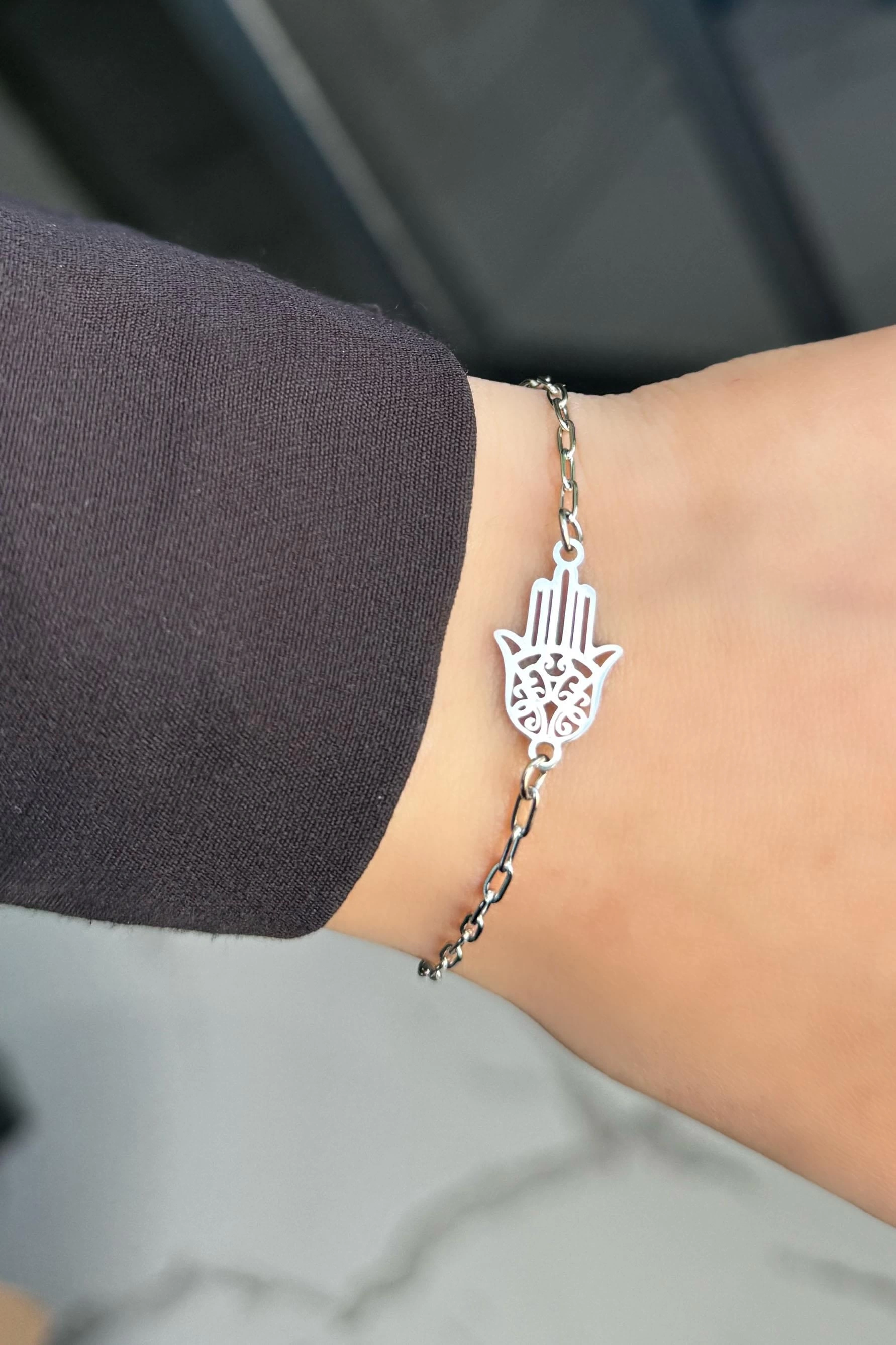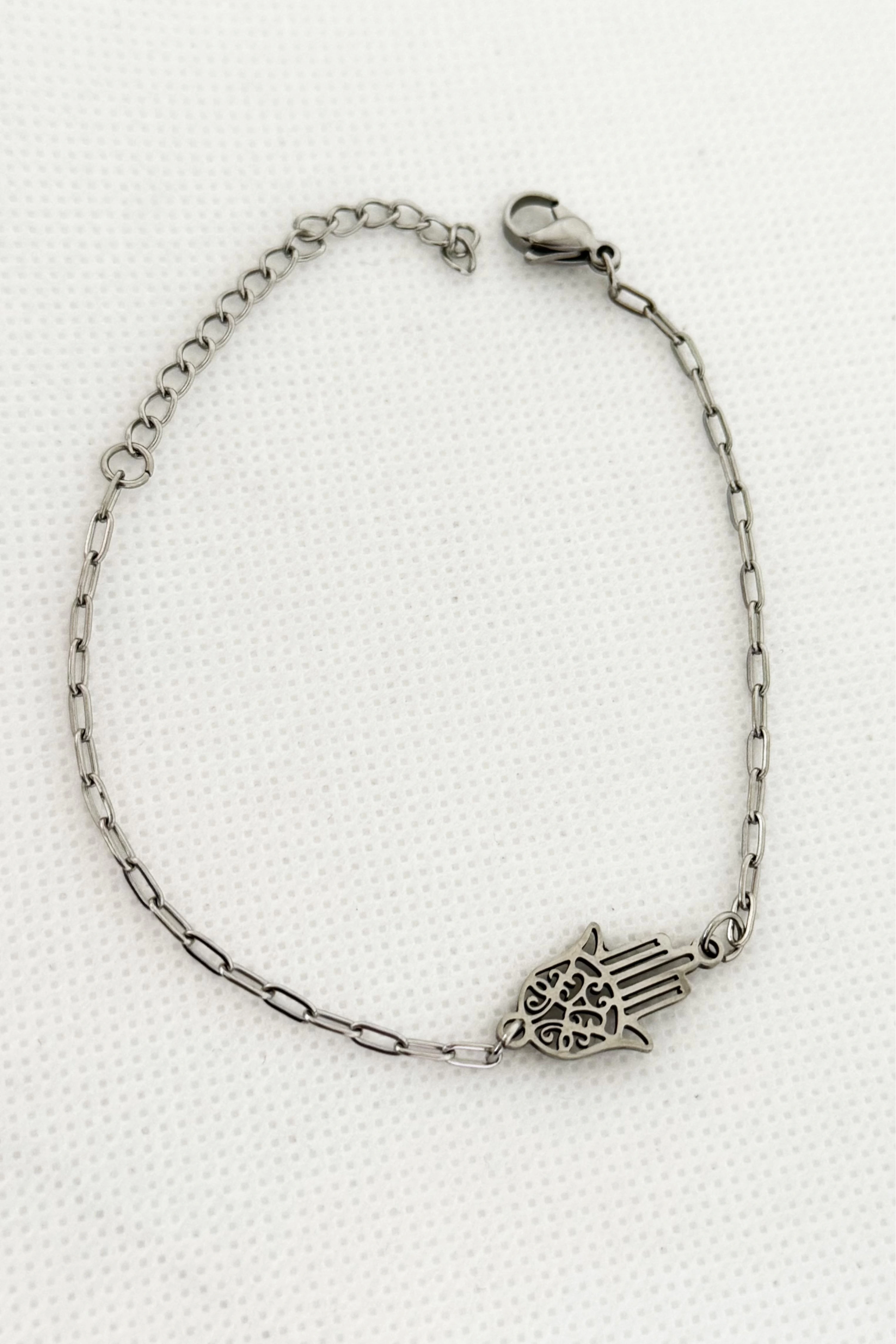 Gümüş Renk Fatma Ana Eli Figürlü Çelik Bileklik