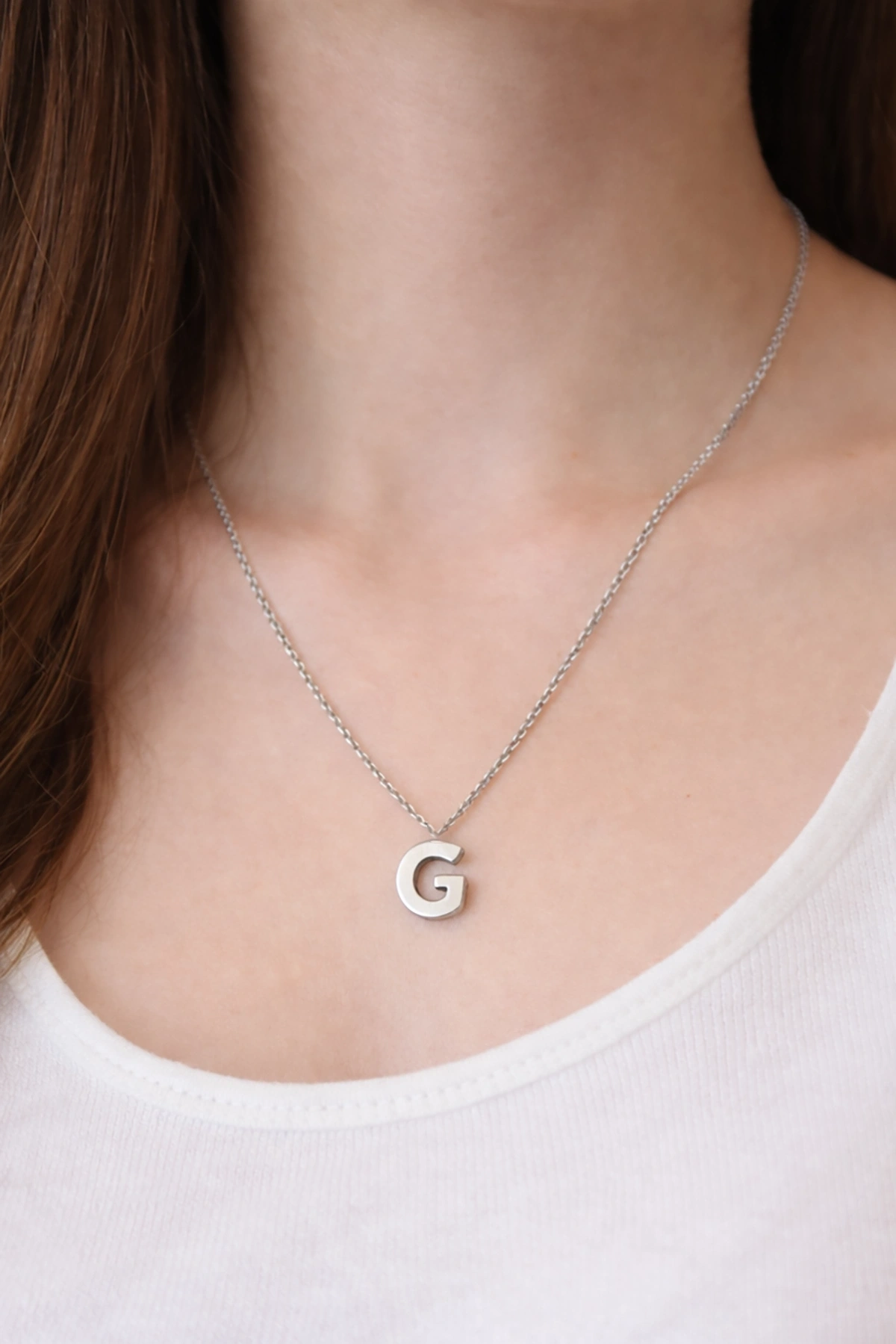 Gümüş Renk G Harf Çelik Kolye