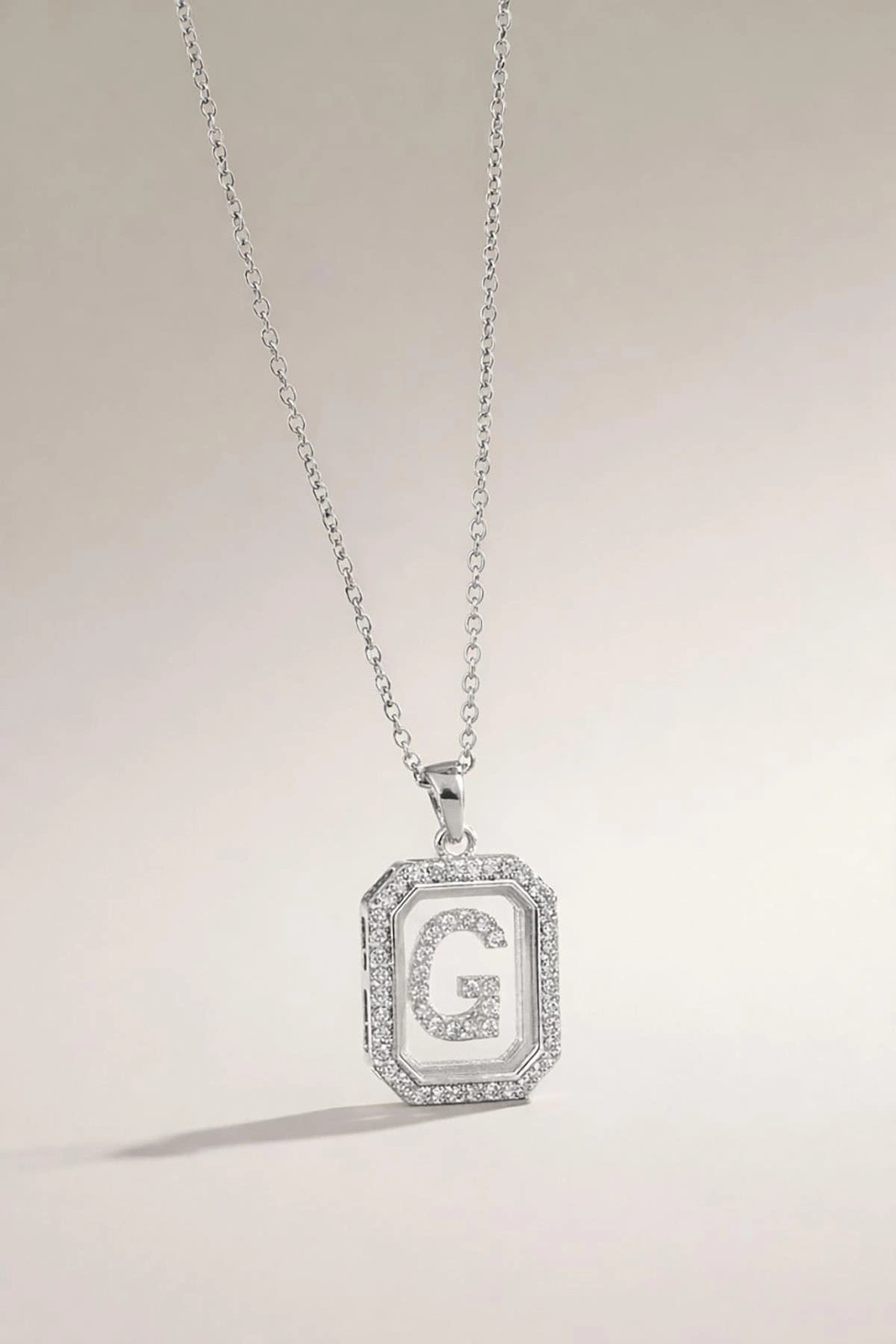 Gümüş Renk G Harf Taş Detaylı Çelik Kolye