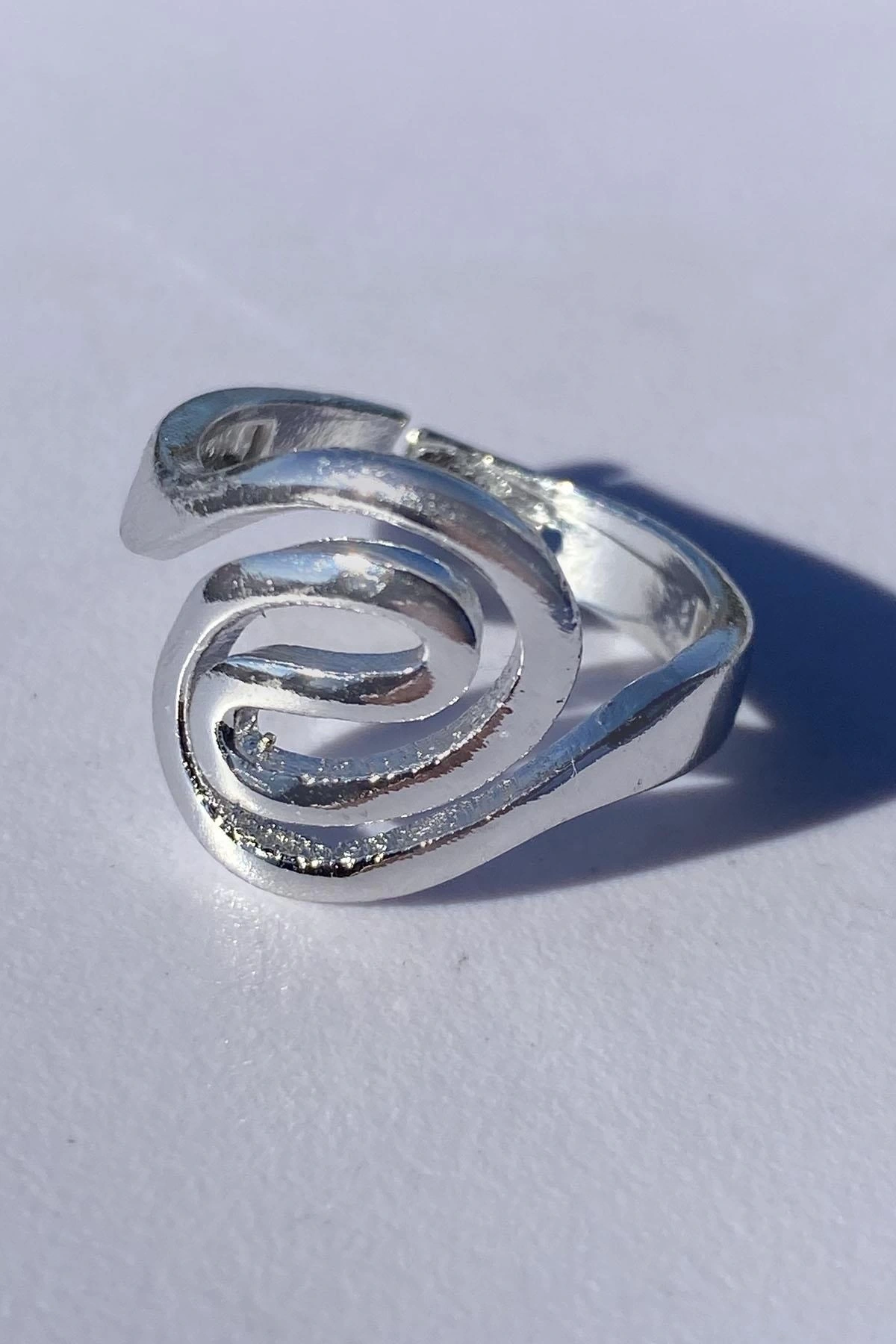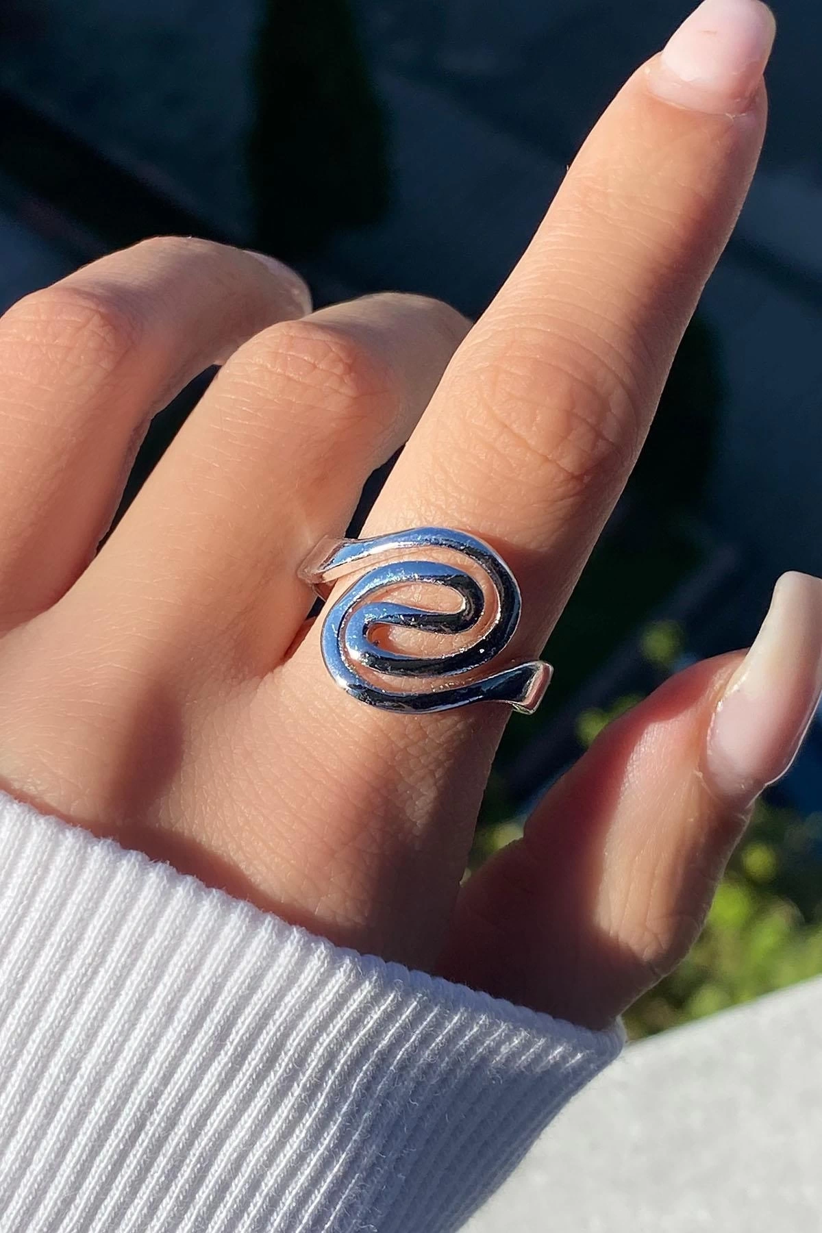 Gümüş Renk Geometrik Desenli Ayarlanabilir Yüzük