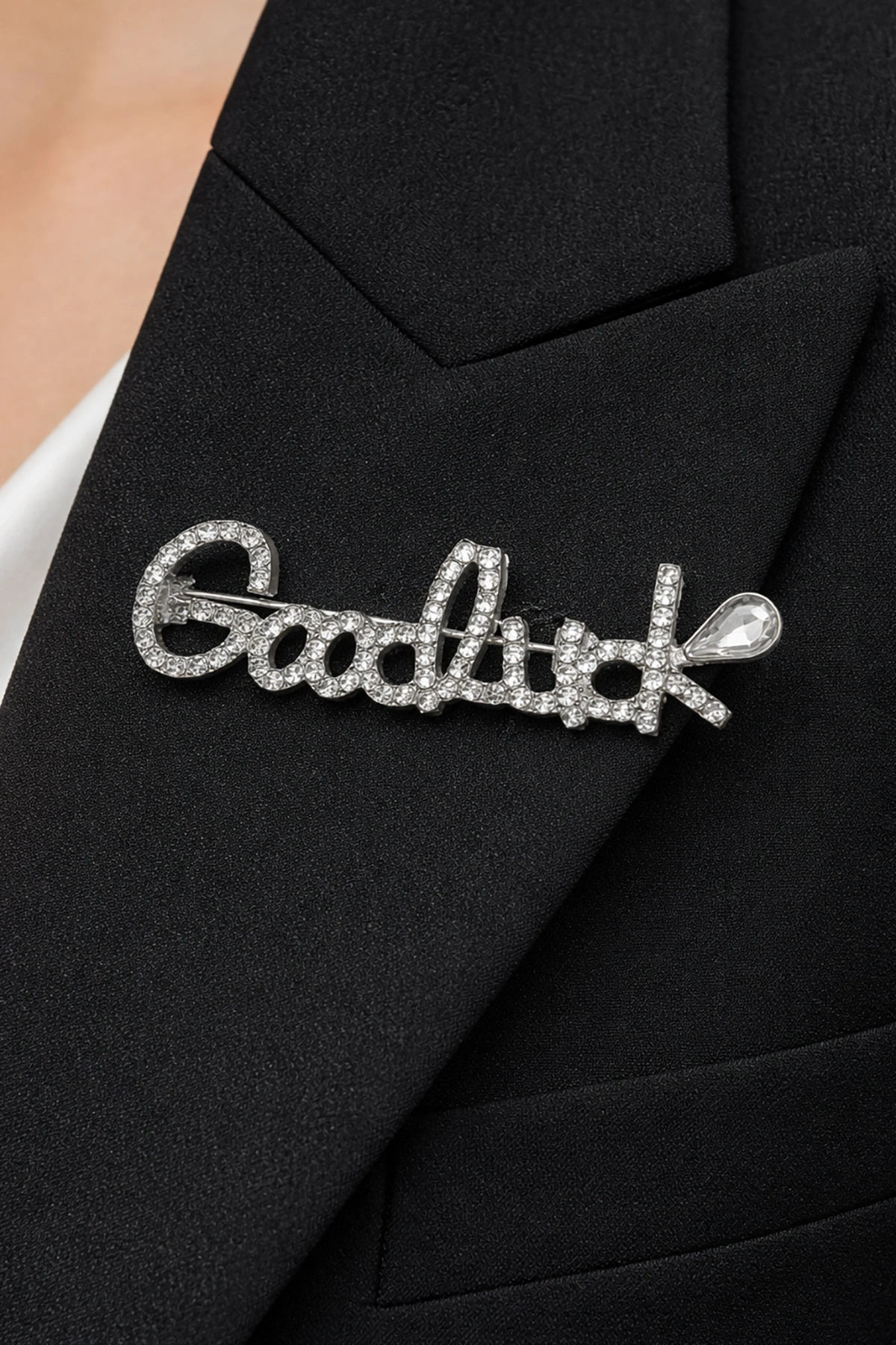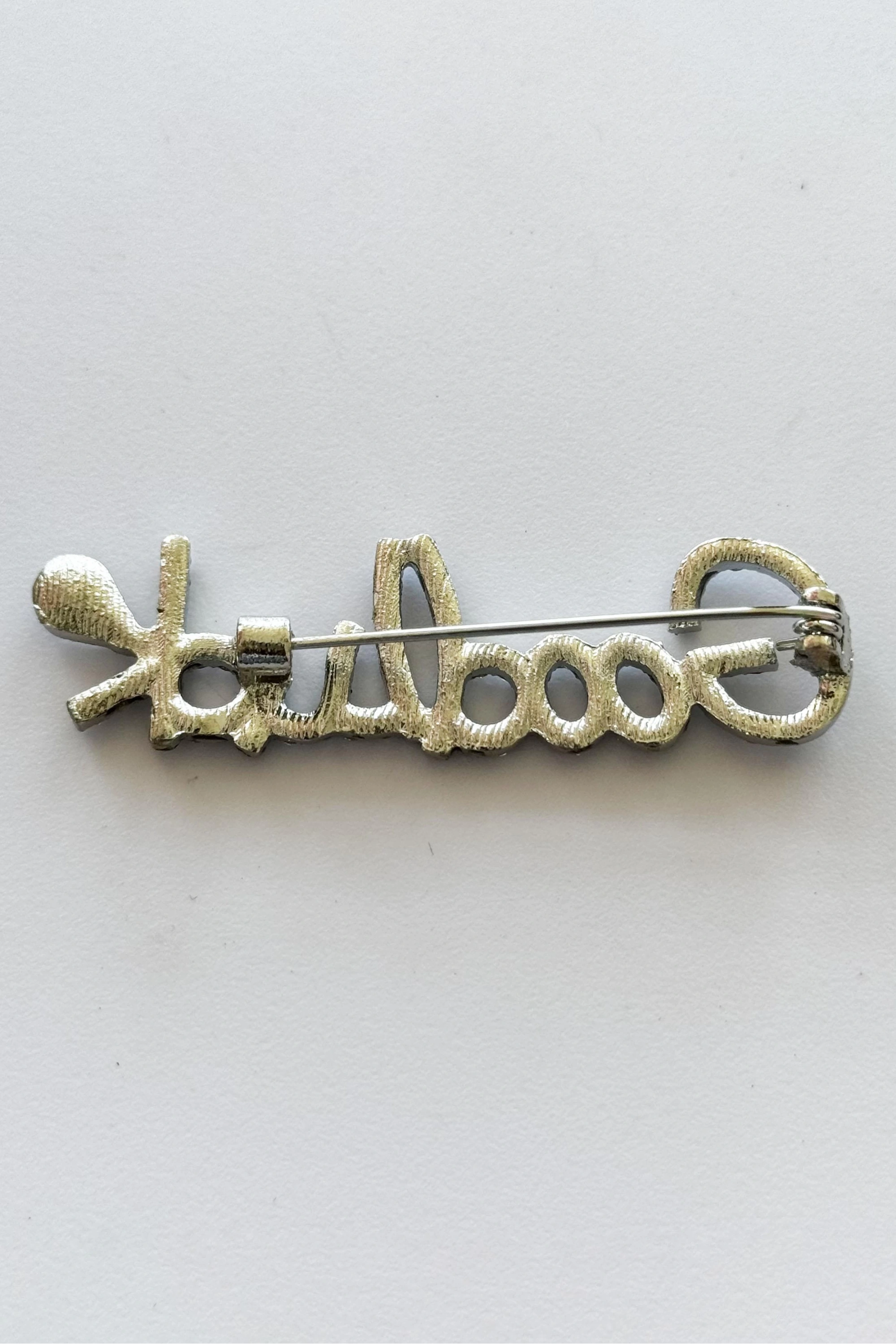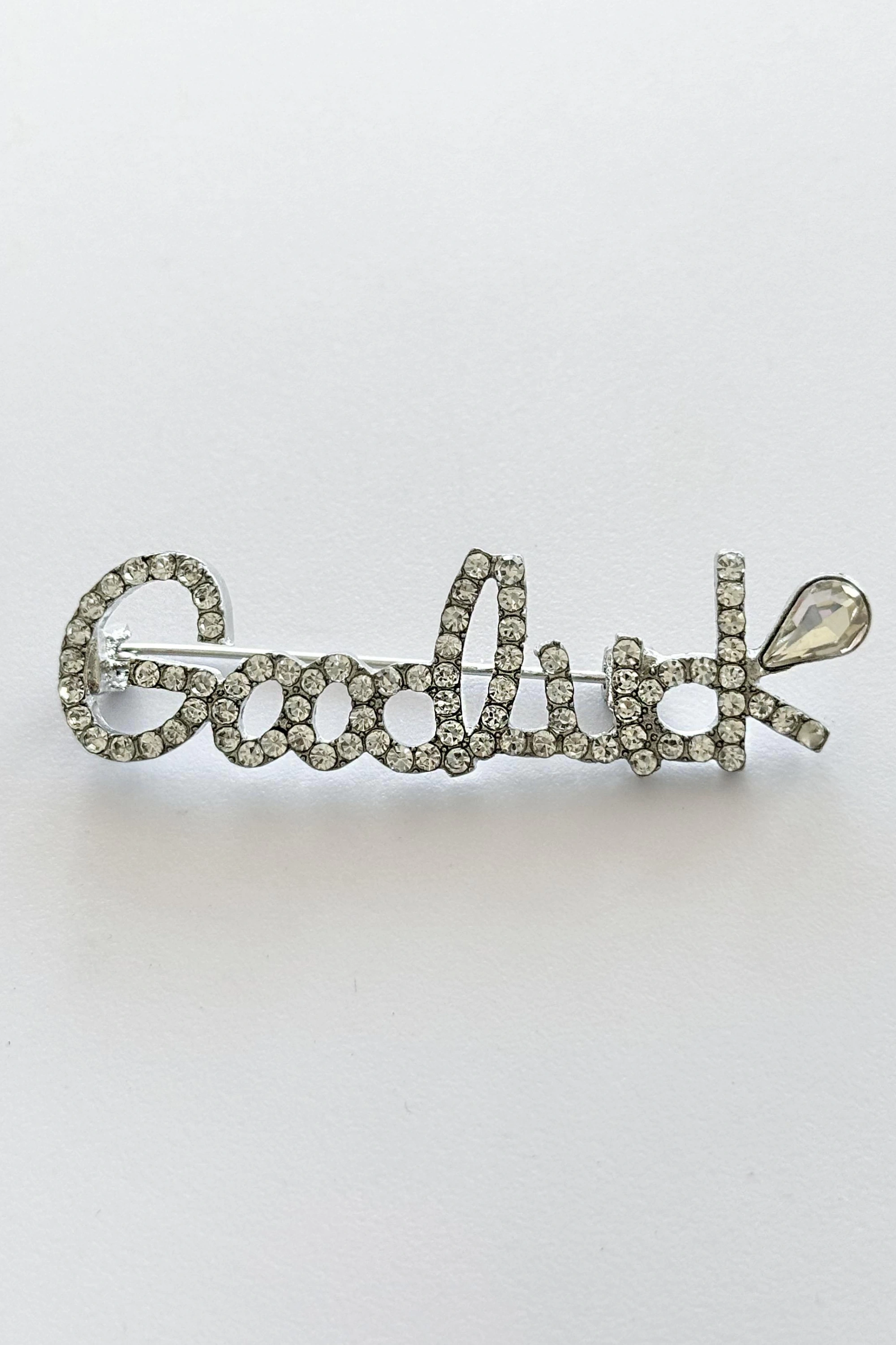 Gümüş Renk Good Luck Yazılı Taşlı Broş