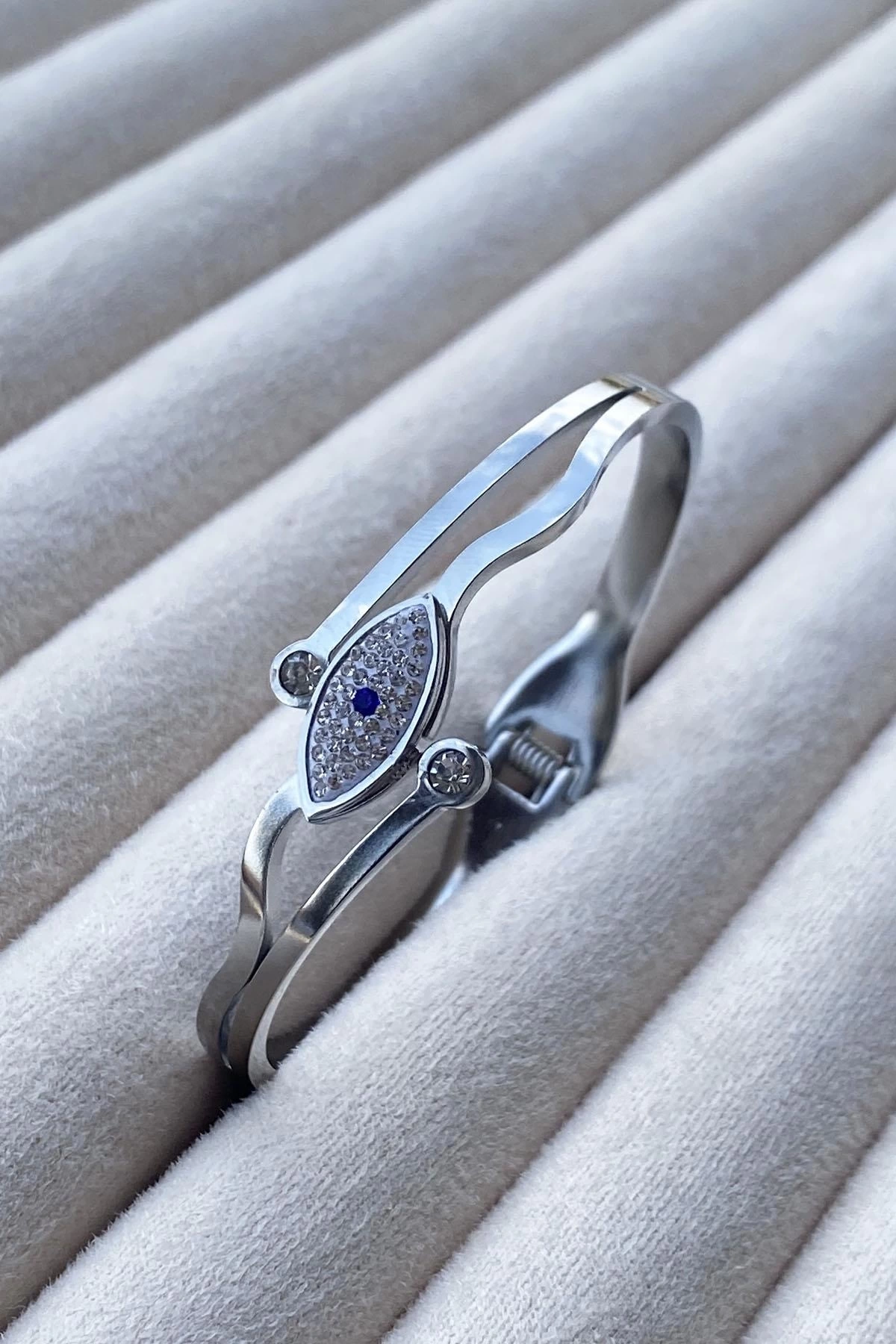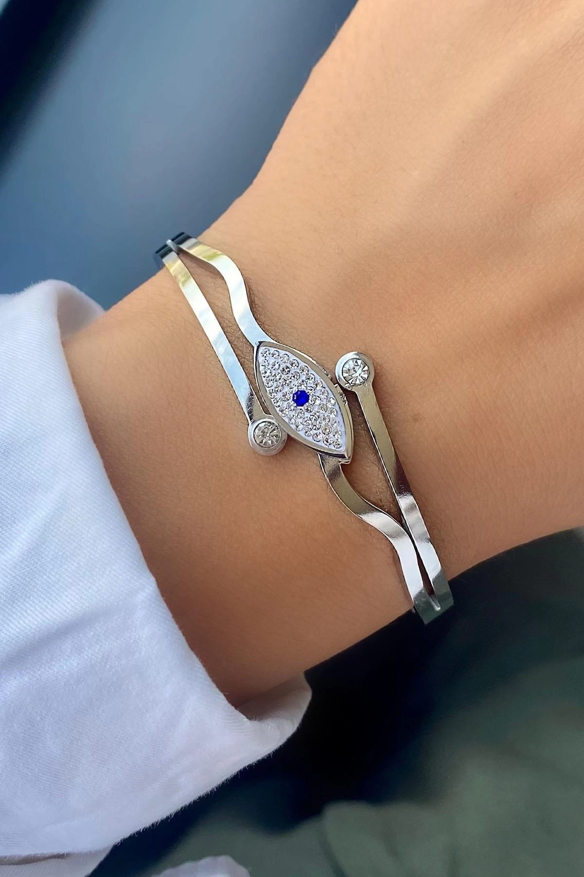 Gümüş Renk Göz Figürlü Çelik Kelepçe Bileklik
