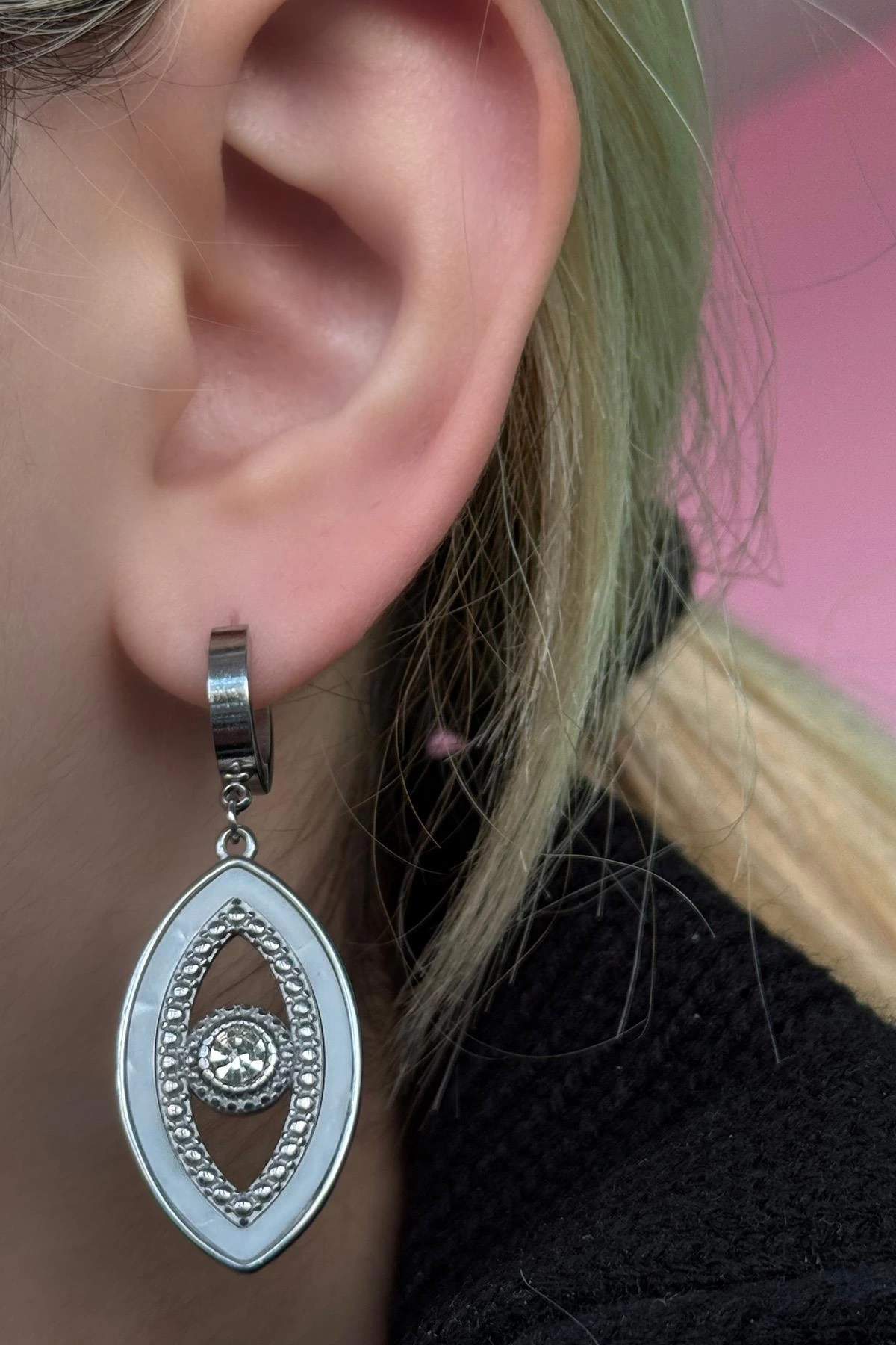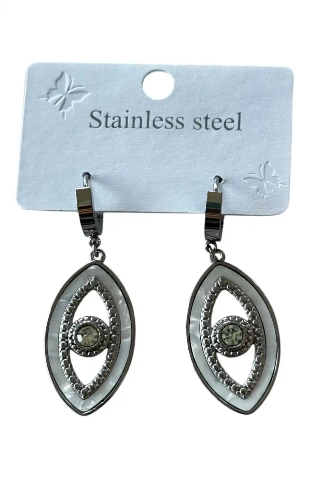 Gümüş Renk Göz Figürlü Çelik Küpe (Çift)