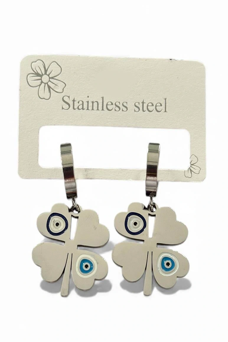 Gümüş Renk Göz Figürlü Çelik Küpe (Çift)