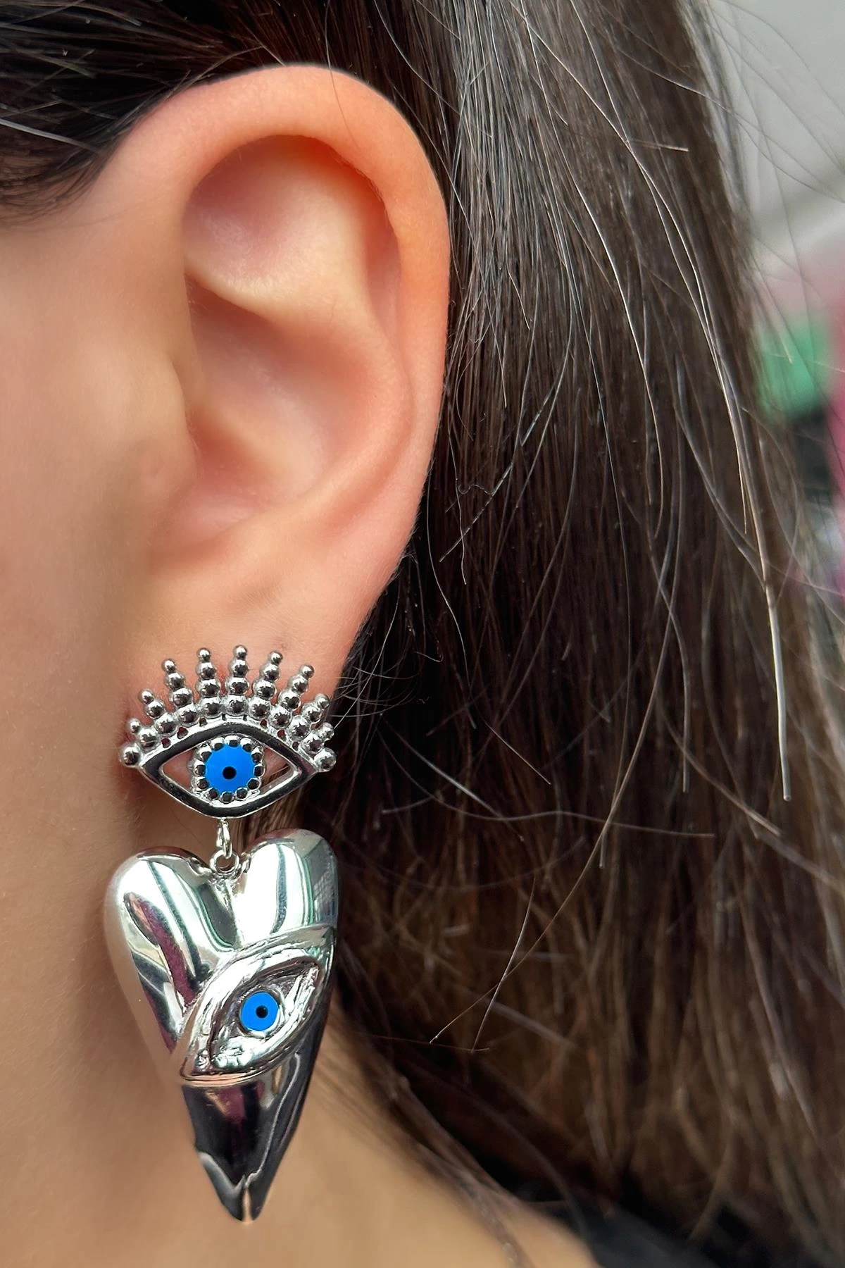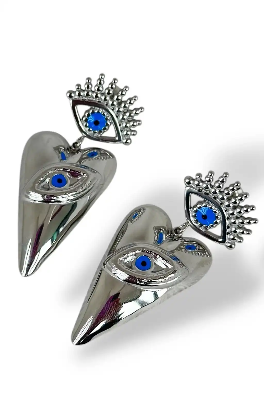 Gümüş Renk Göz Figürlü Çelik Küpe (Çift)