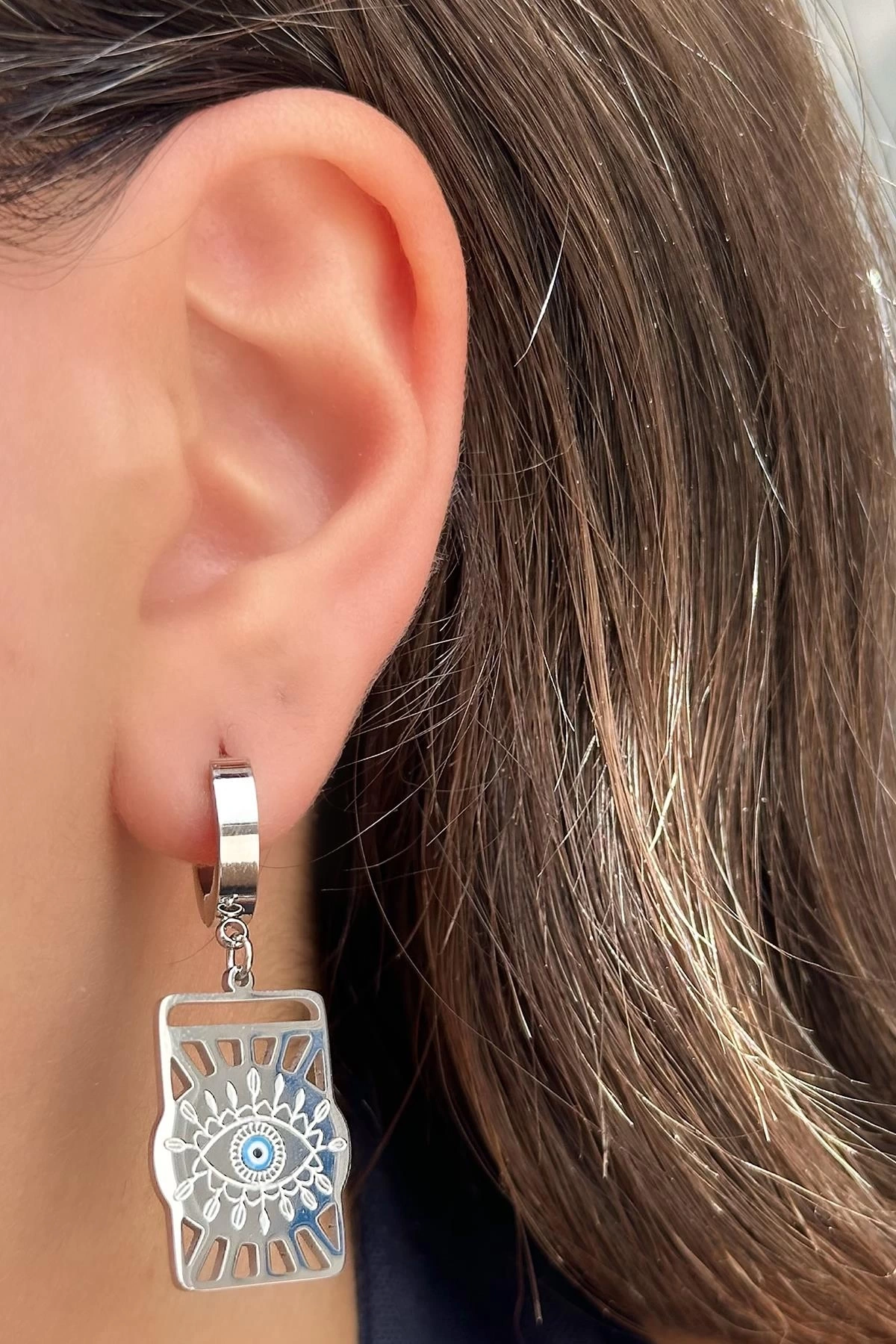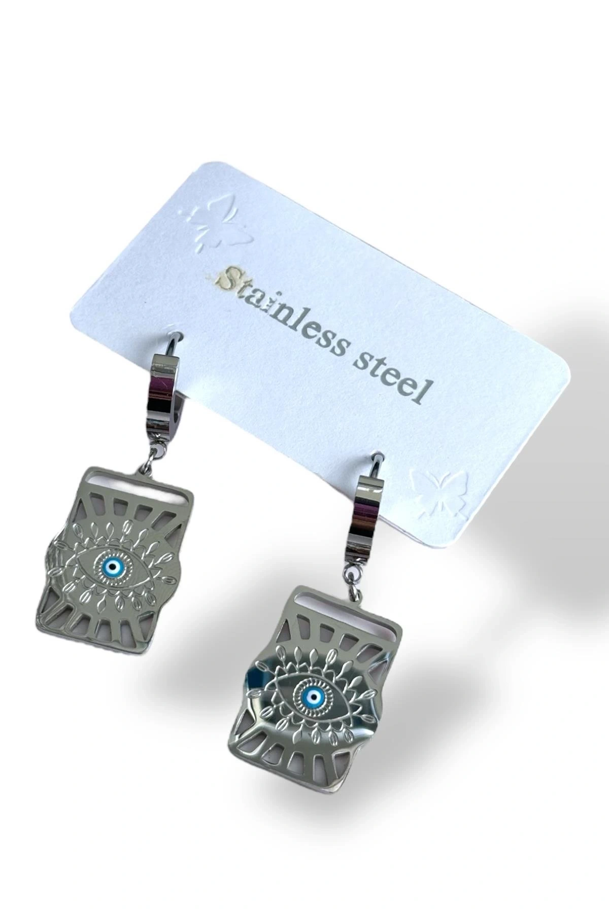 Gümüş Renk Göz Figürlü Çelik Küpe (Çift)