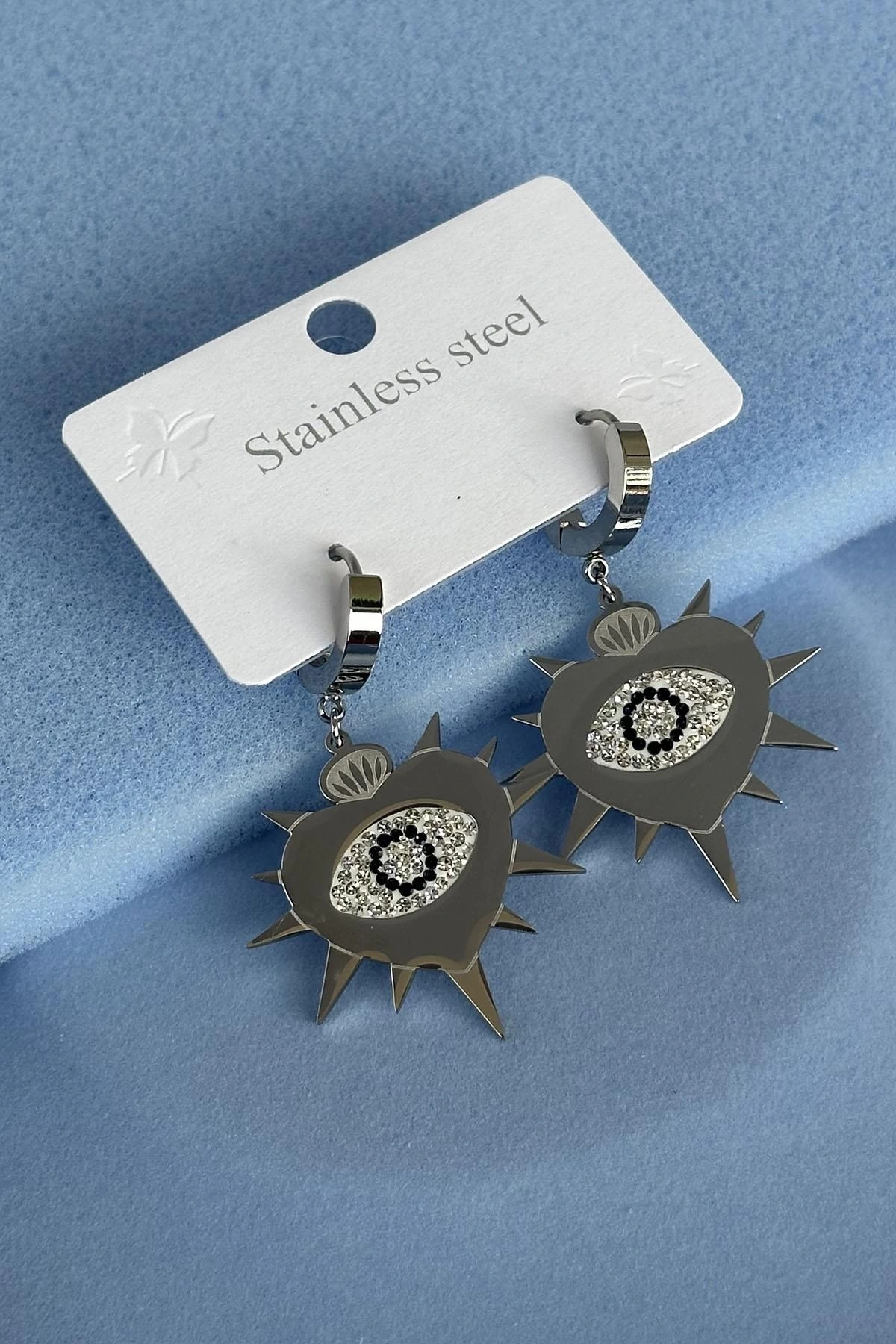 Gümüş Renk Göz Figürlü Çelik Küpe (Çift)