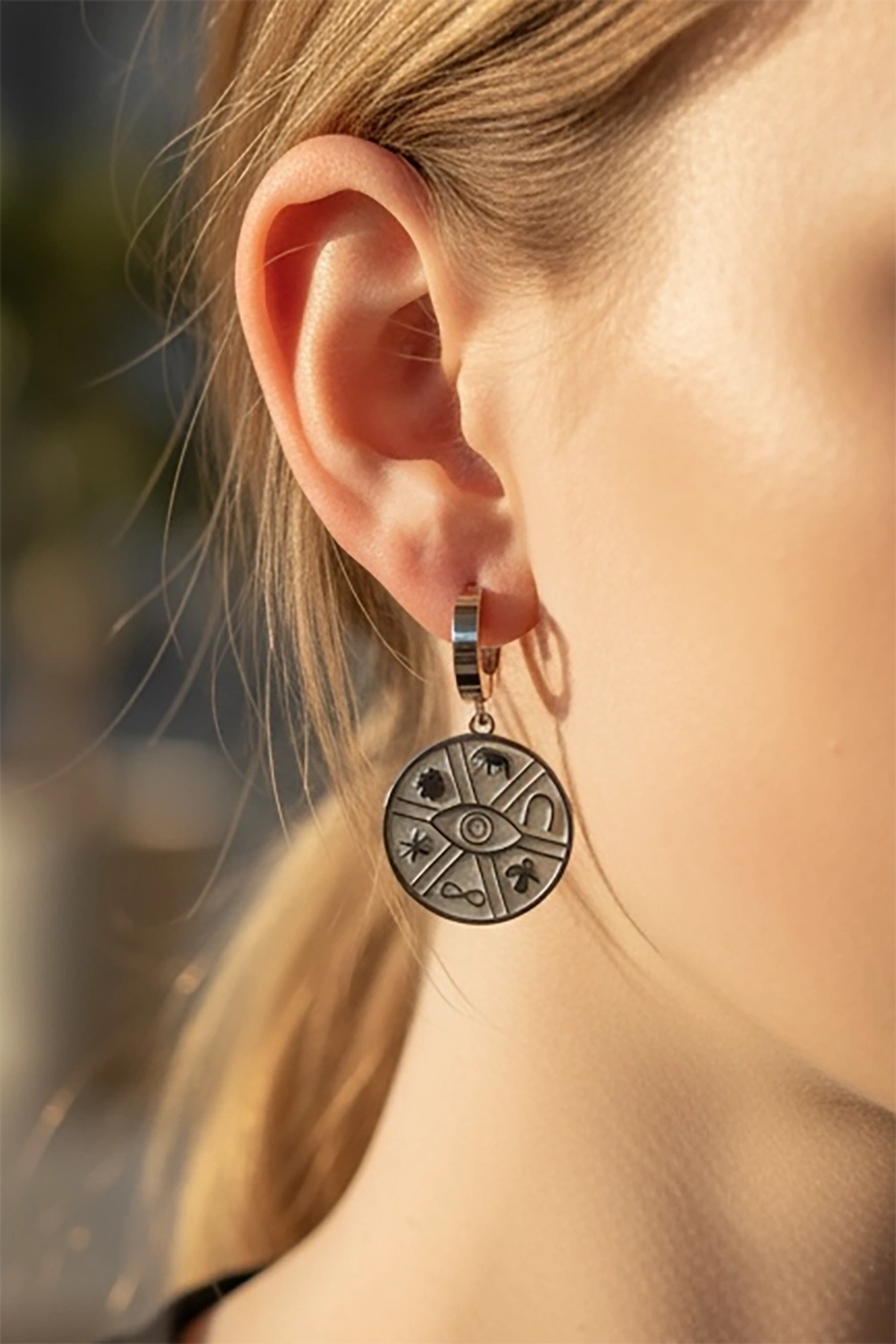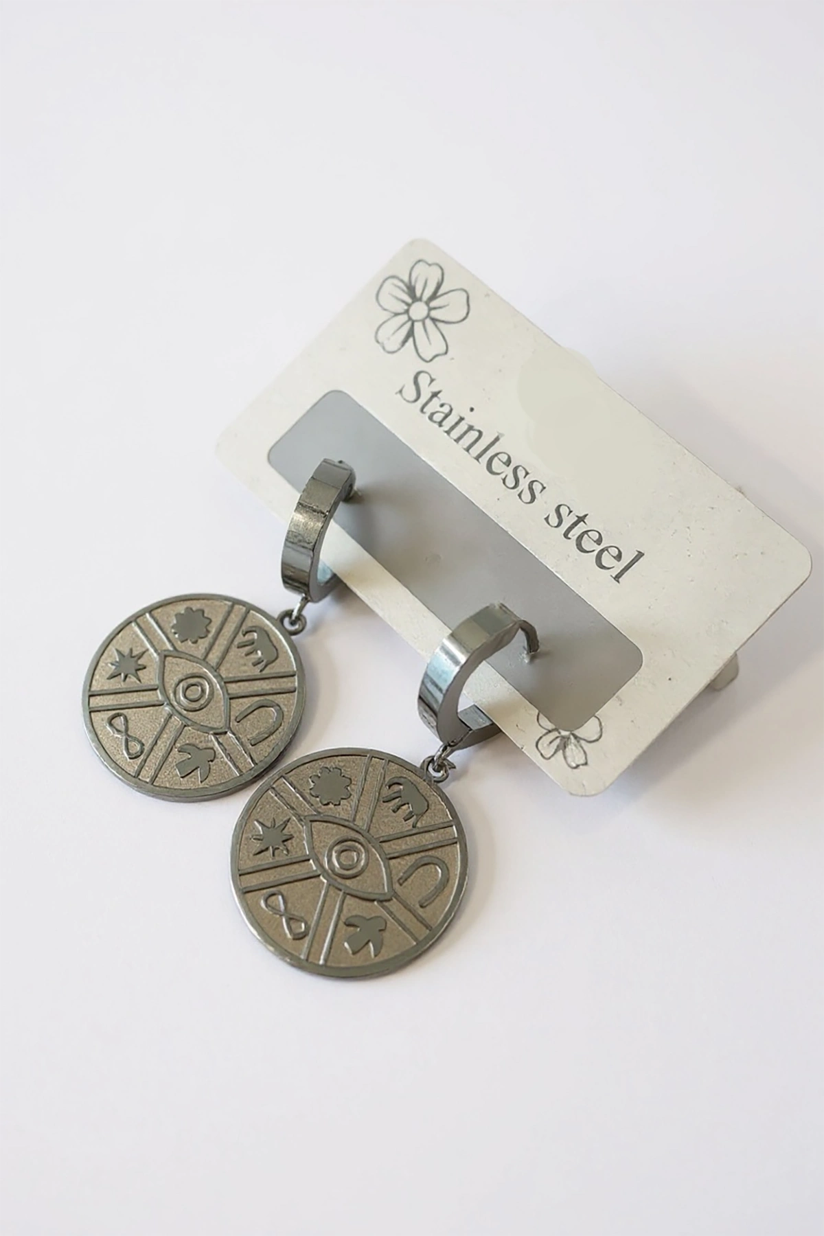 Gümüş Renk Göz Figürlü Çelik Küpe (Çift)