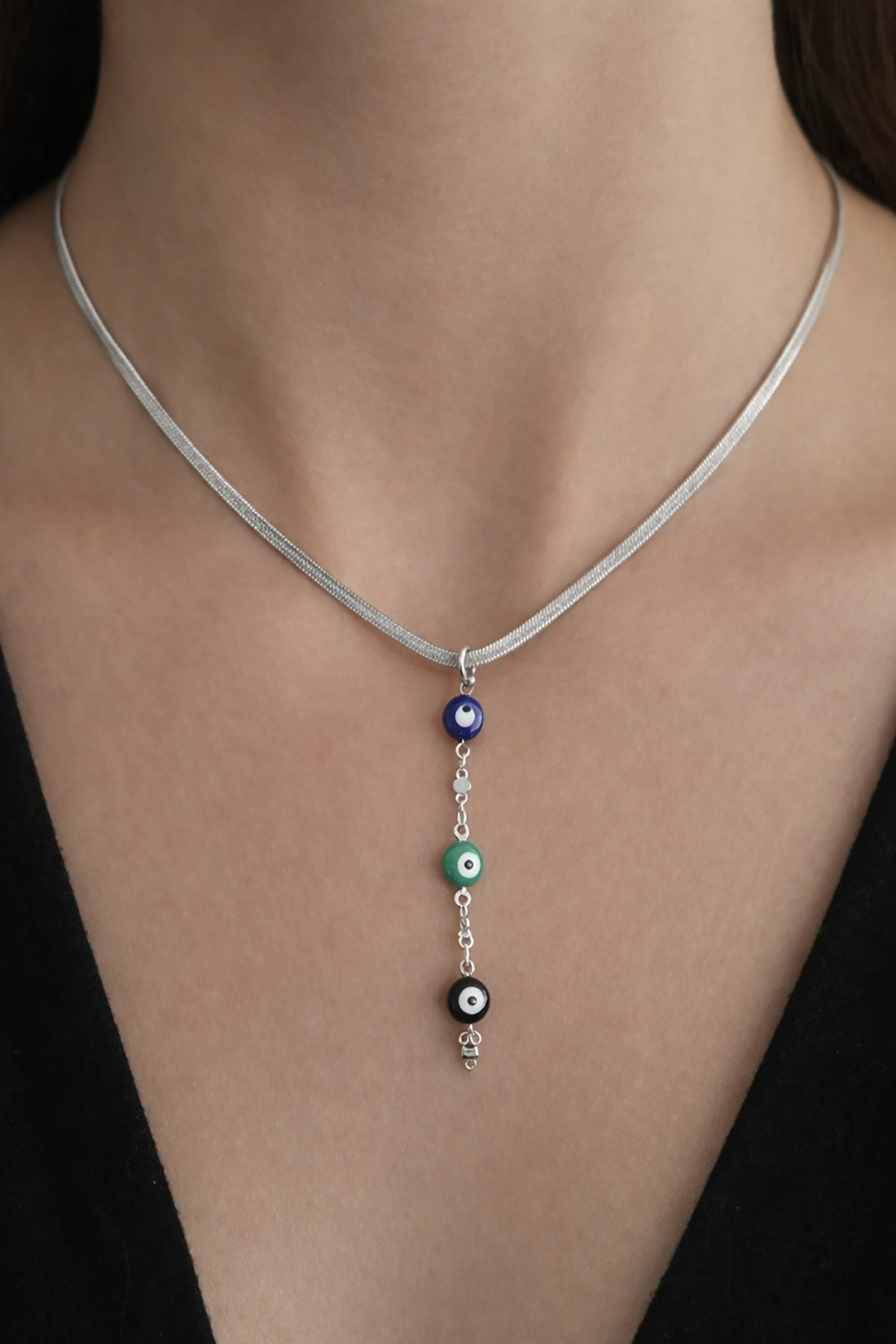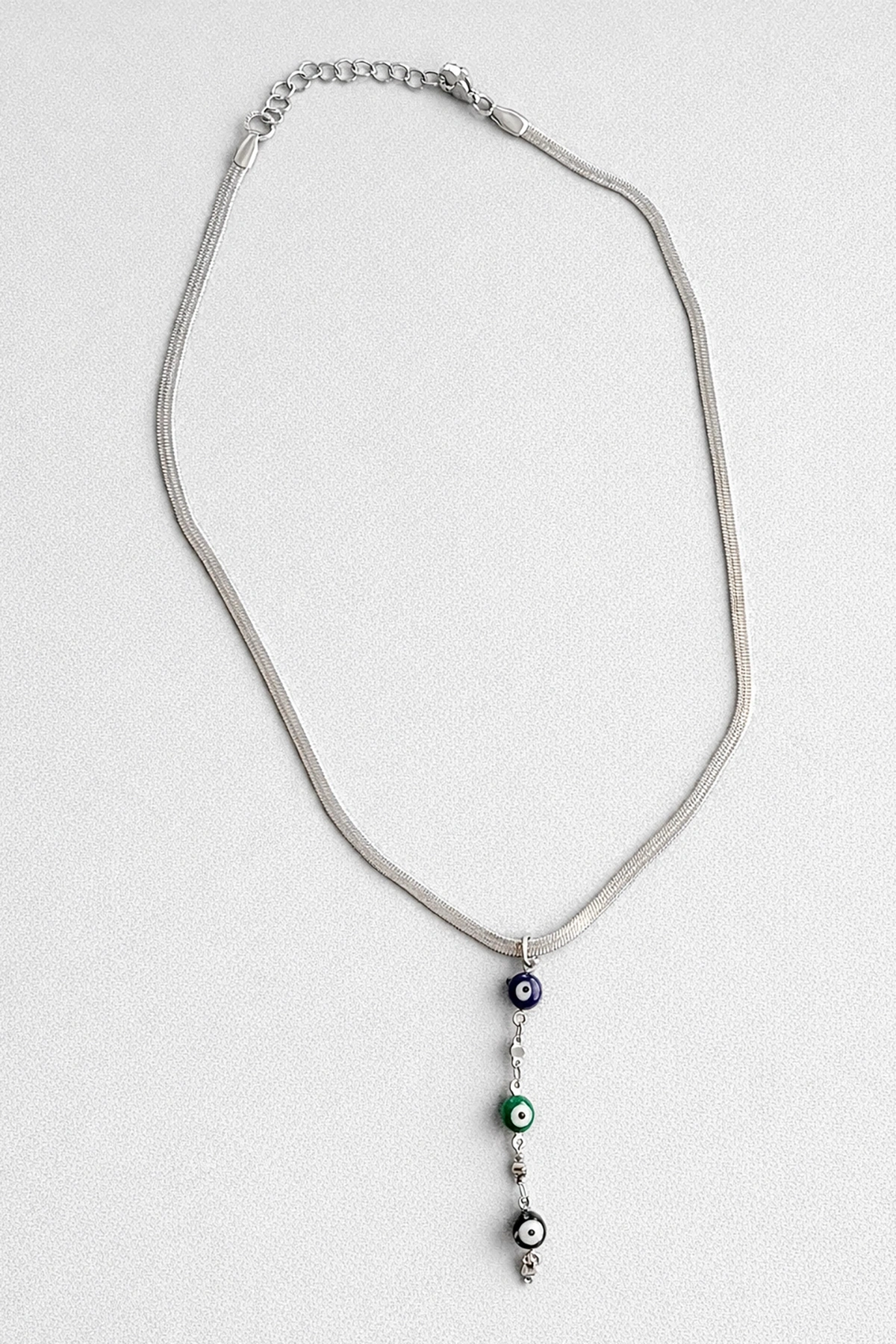 Gümüş Renk Göz Figürlü İtalyan Zincir Detaylı Çelik Kolye