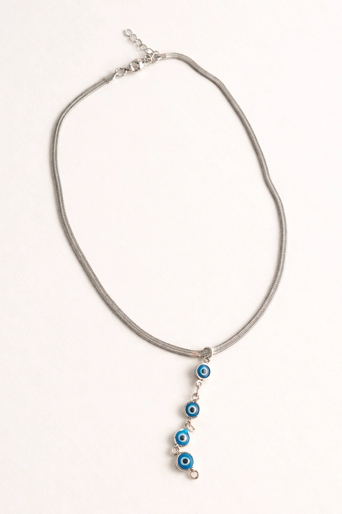 Gümüş Renk Göz Figürlü İtalyan Zincir Detaylı Çelik Kolye