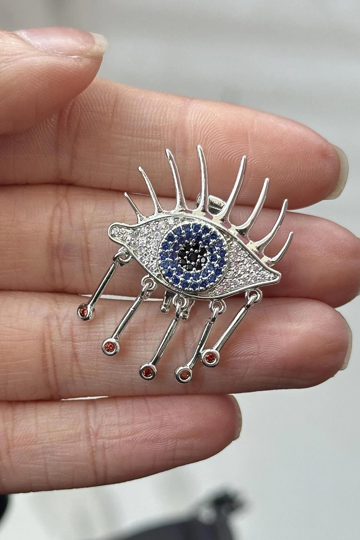 Gümüş Renk Göz Figürlü Taş Detaylı Ajda Charm / Kolye/ Bileklik Ucu