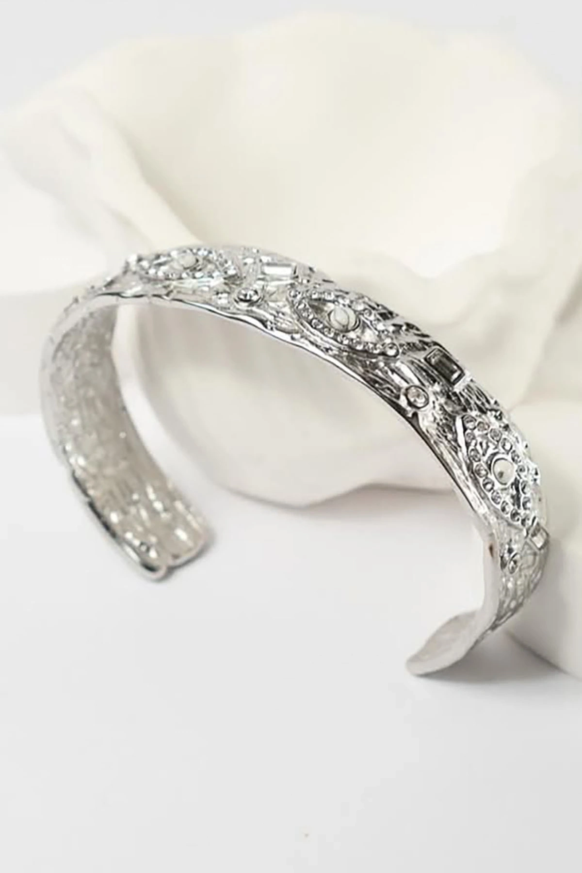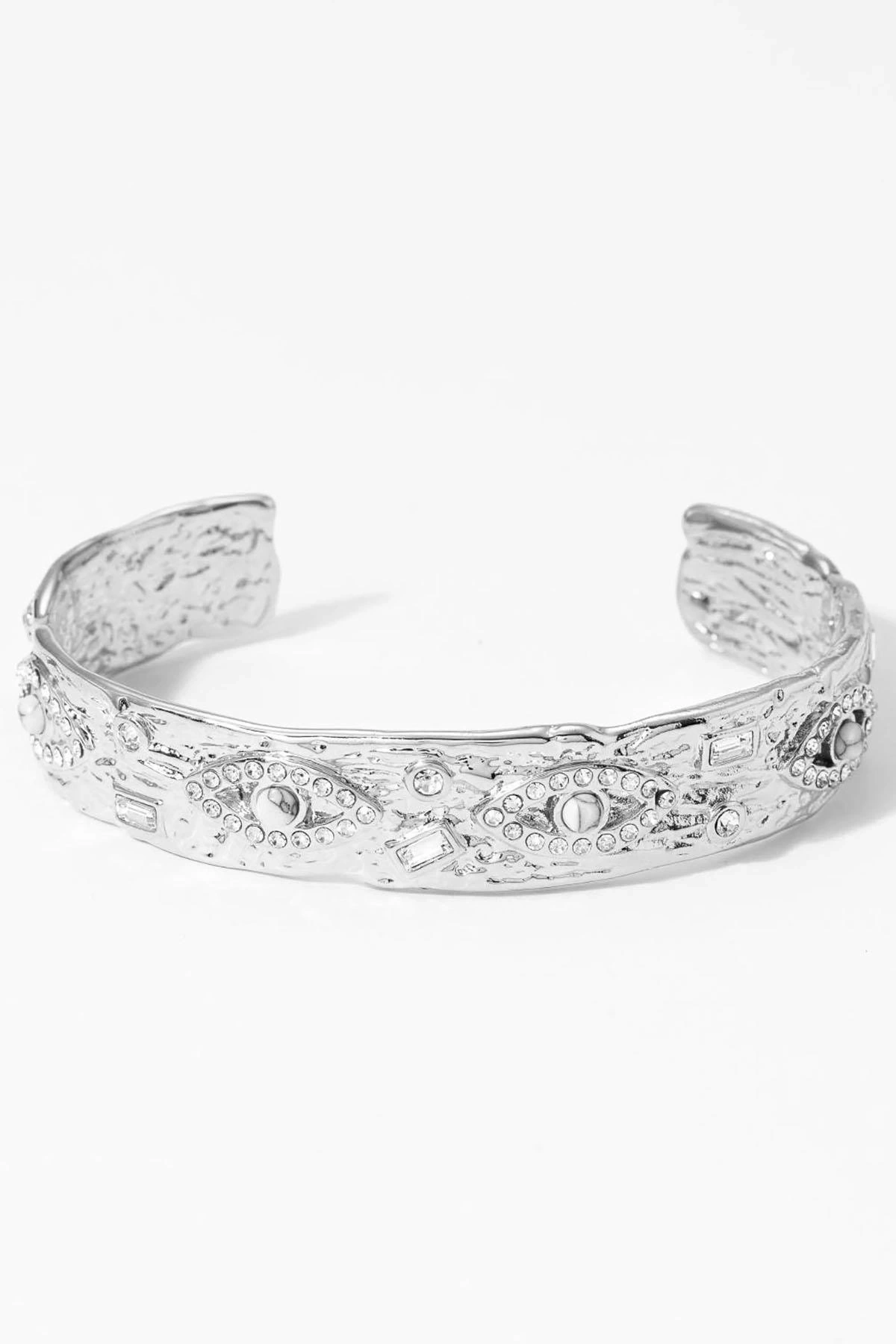 Gümüş Renk Göz Figürlü Taş Detaylı Çelik Kelepçe Bileklik