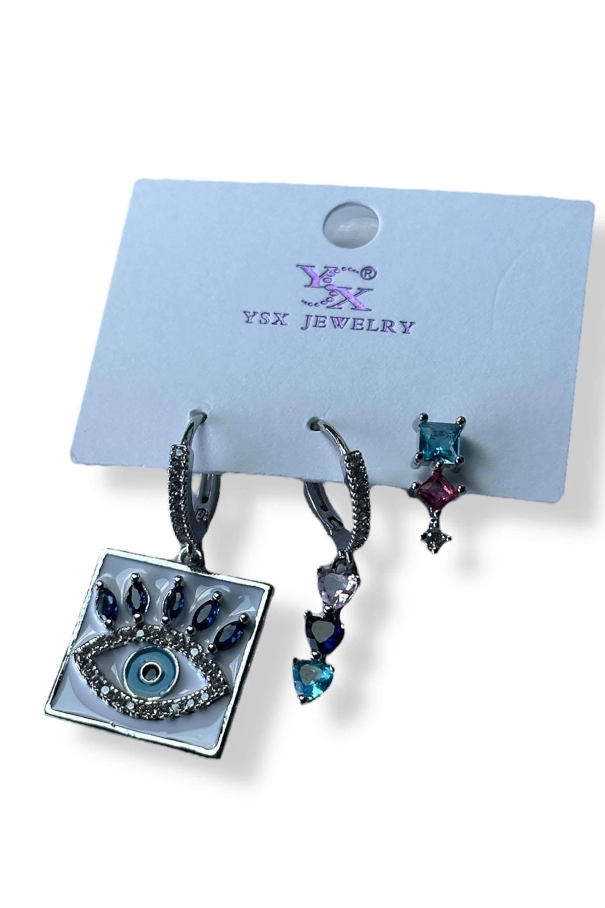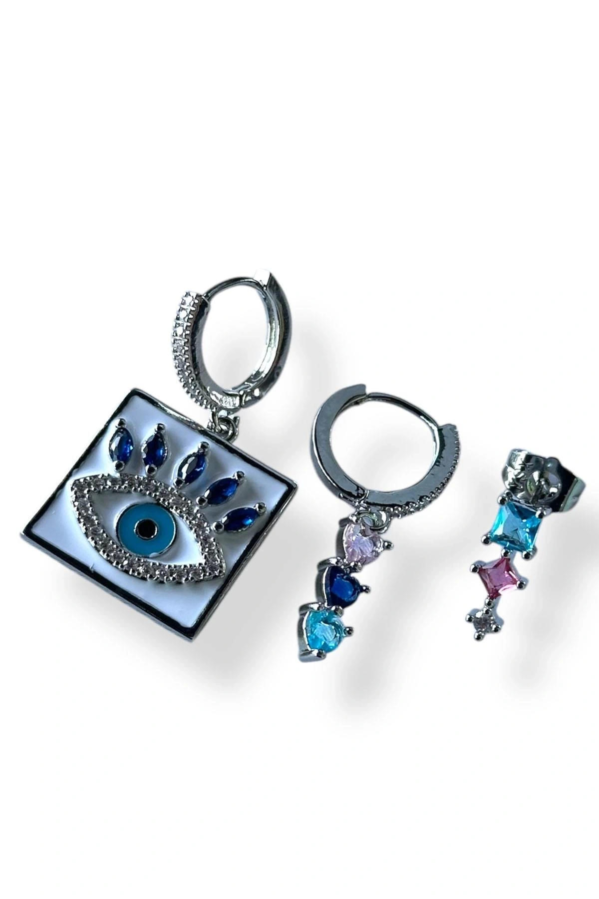 Gümüş Renk Göz Figürlü VİP 3'lü YSX Küpe Set