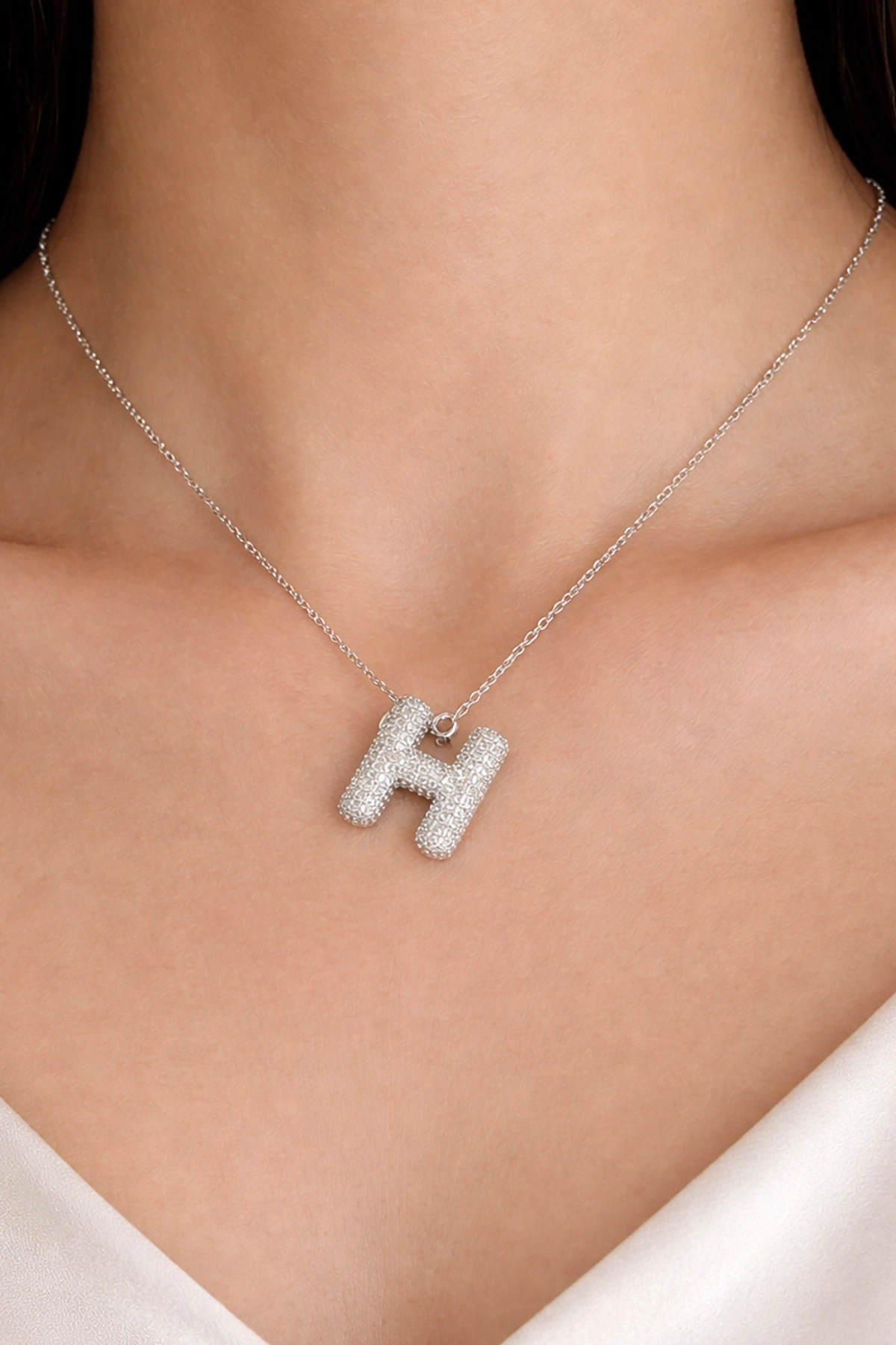 Gümüş Renk H Harf Taş Detaylı Çelik Kolye