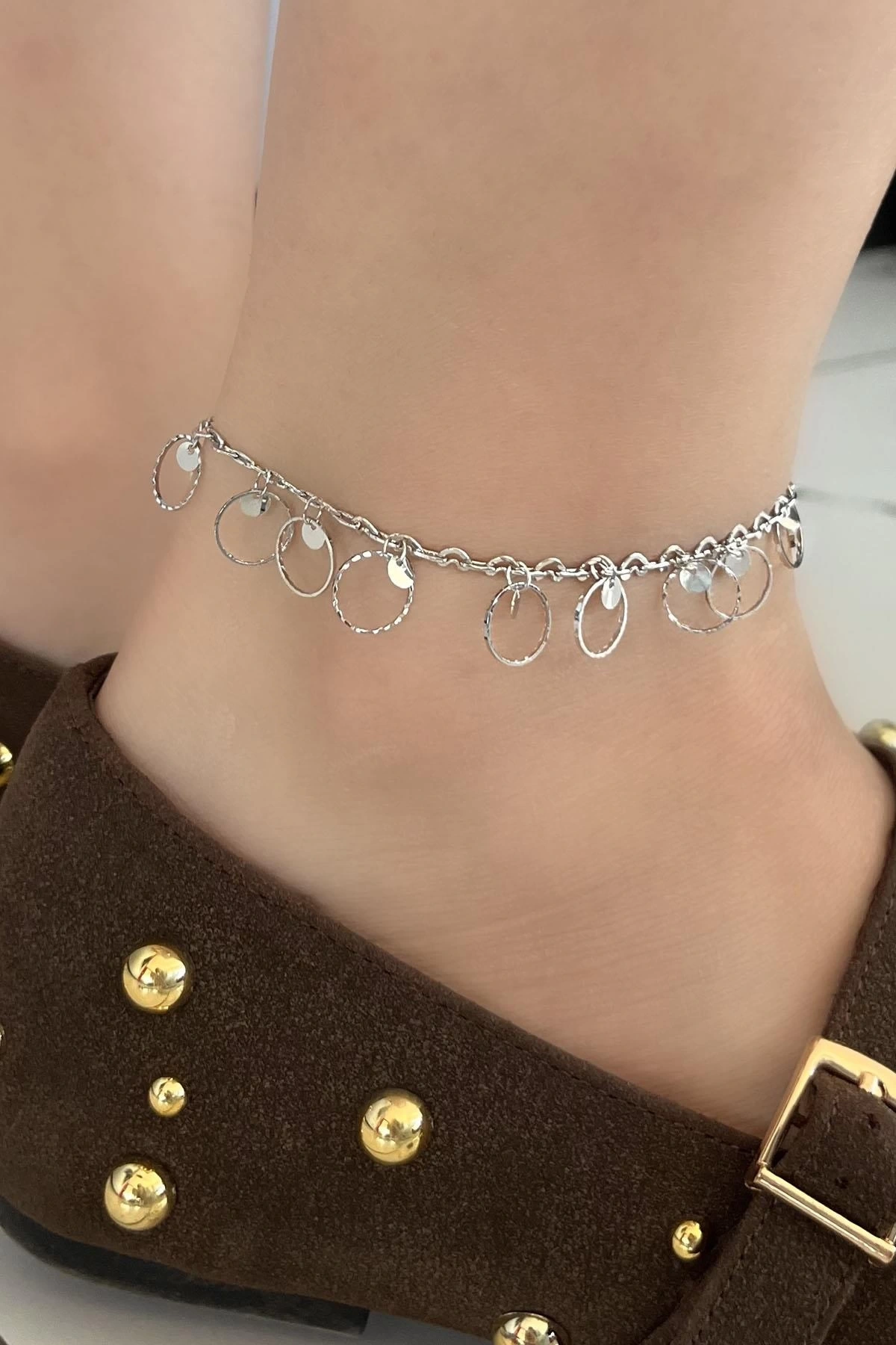 Gümüş Renk Halka Detaylı YSX Halhal