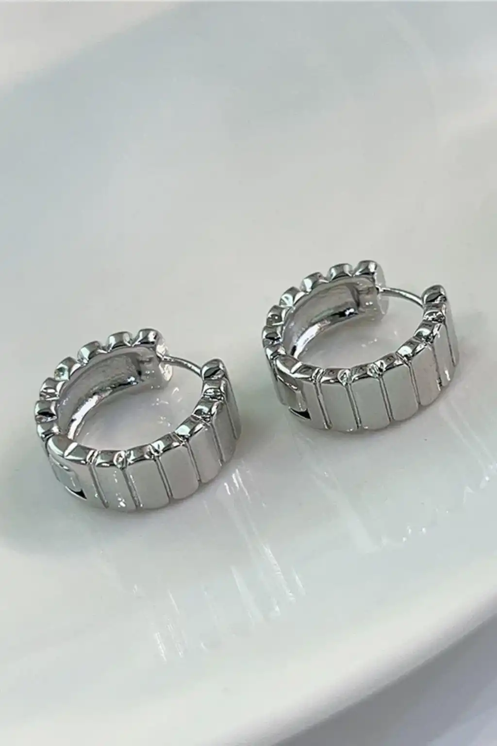 Altın Renk Siyah Detaylı Yuvarlak Küpe (Çift)