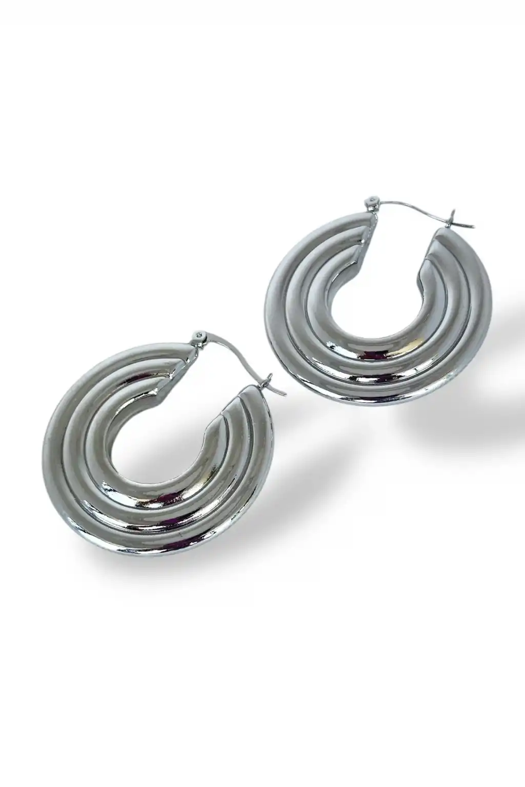 - Zarif tasarımıyla dikkat çeken bu çift küpe, gümüş rengi detaylarıyla göz alıcı bir görünüm sunar.