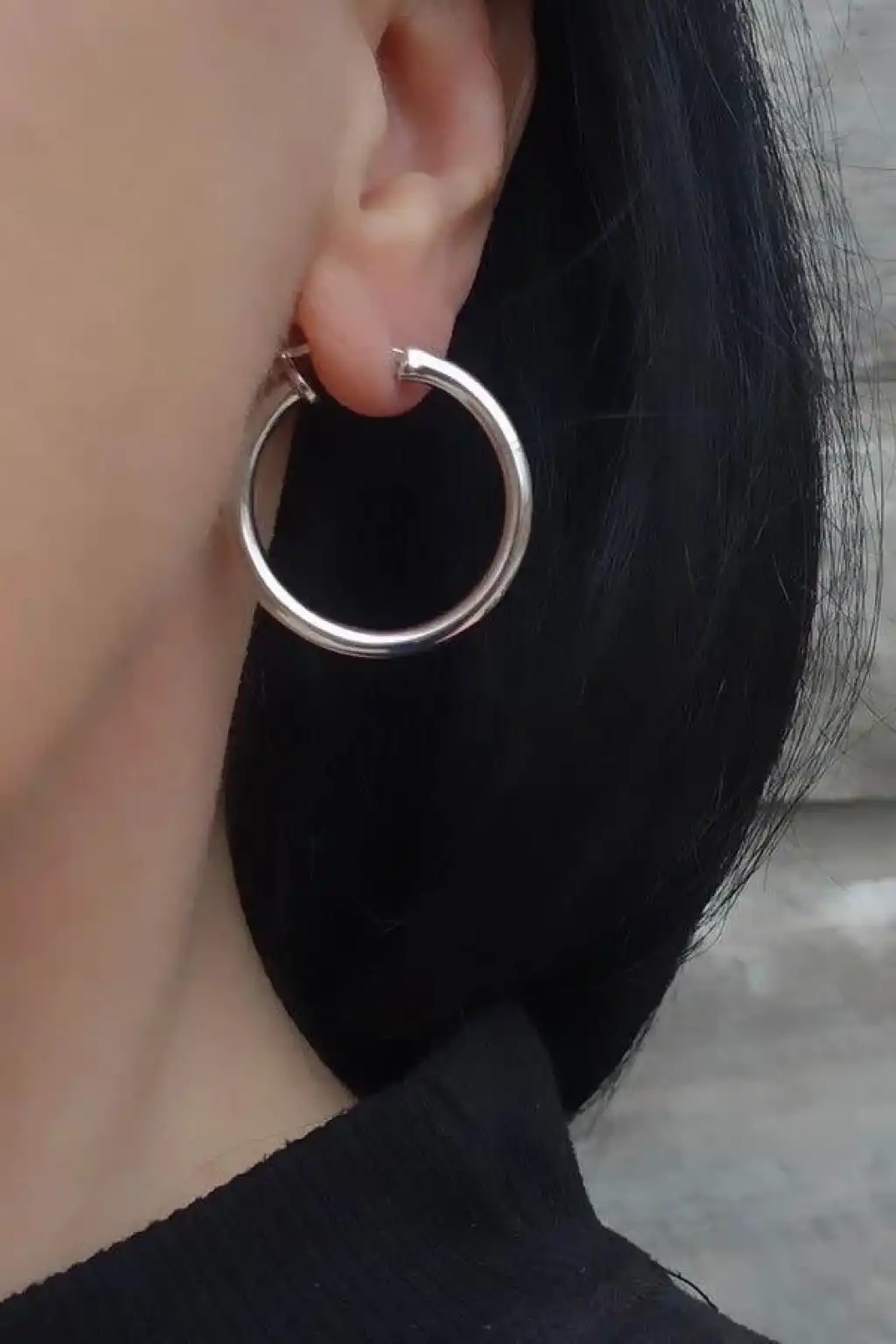 Gümüş Renk Üçlü Görünümlü Halka Küpe (Çift)