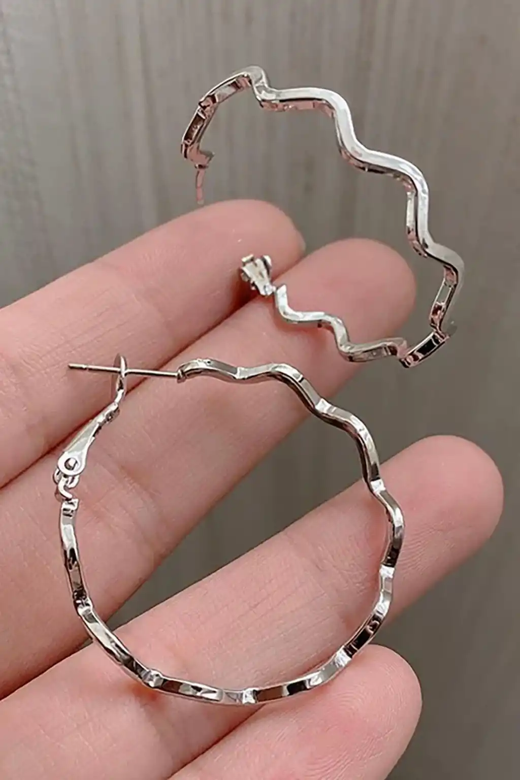 Gümüş Renk Üçlü Görünümlü Halka Küpe (Çift)