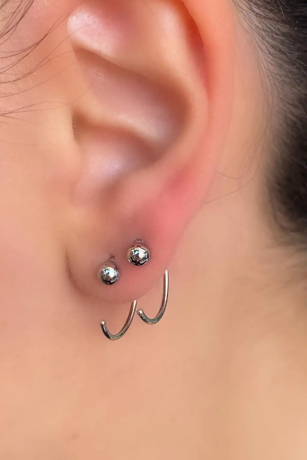 Altın Renk Boncuk Detaylı Küpe (Çift)
