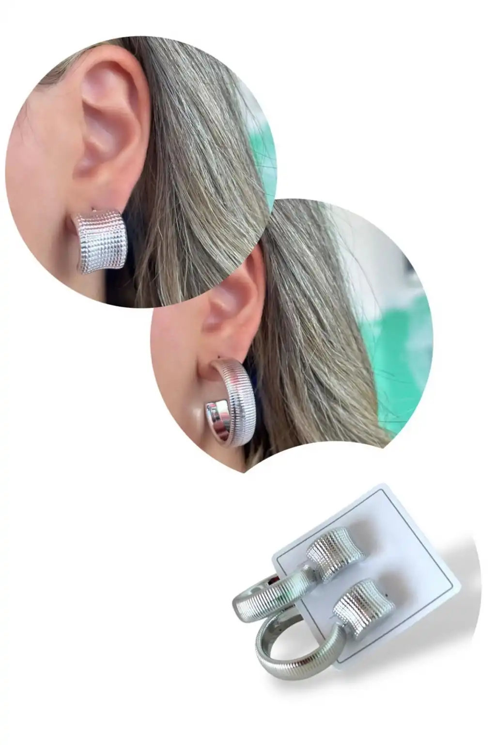 Gümüş Renk Halka Küpe Set
