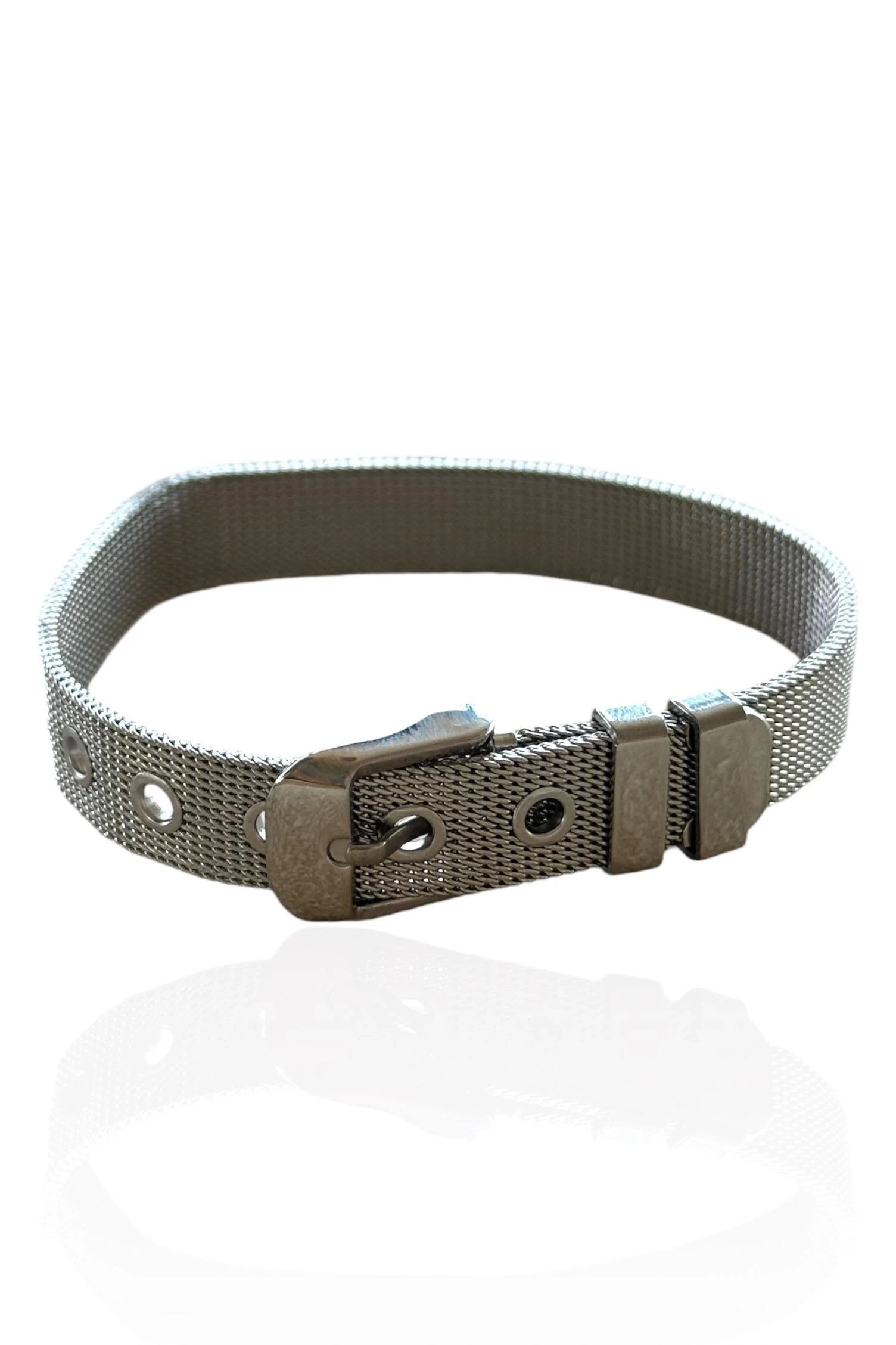Gümüş Renk Hasır Kordon Detaylı Çelik Bileklik