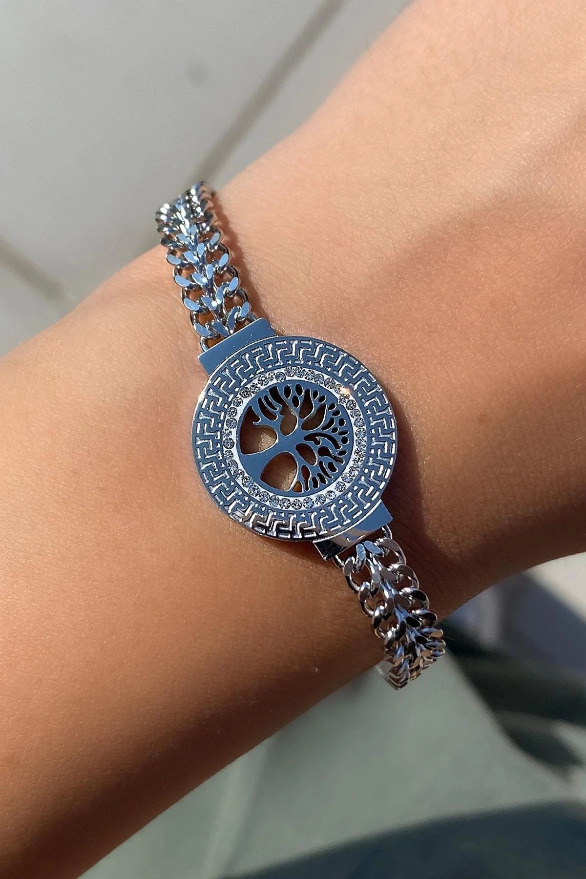 Gümüş Renk Hayat Ağacı Figürlü Çelik Bileklik