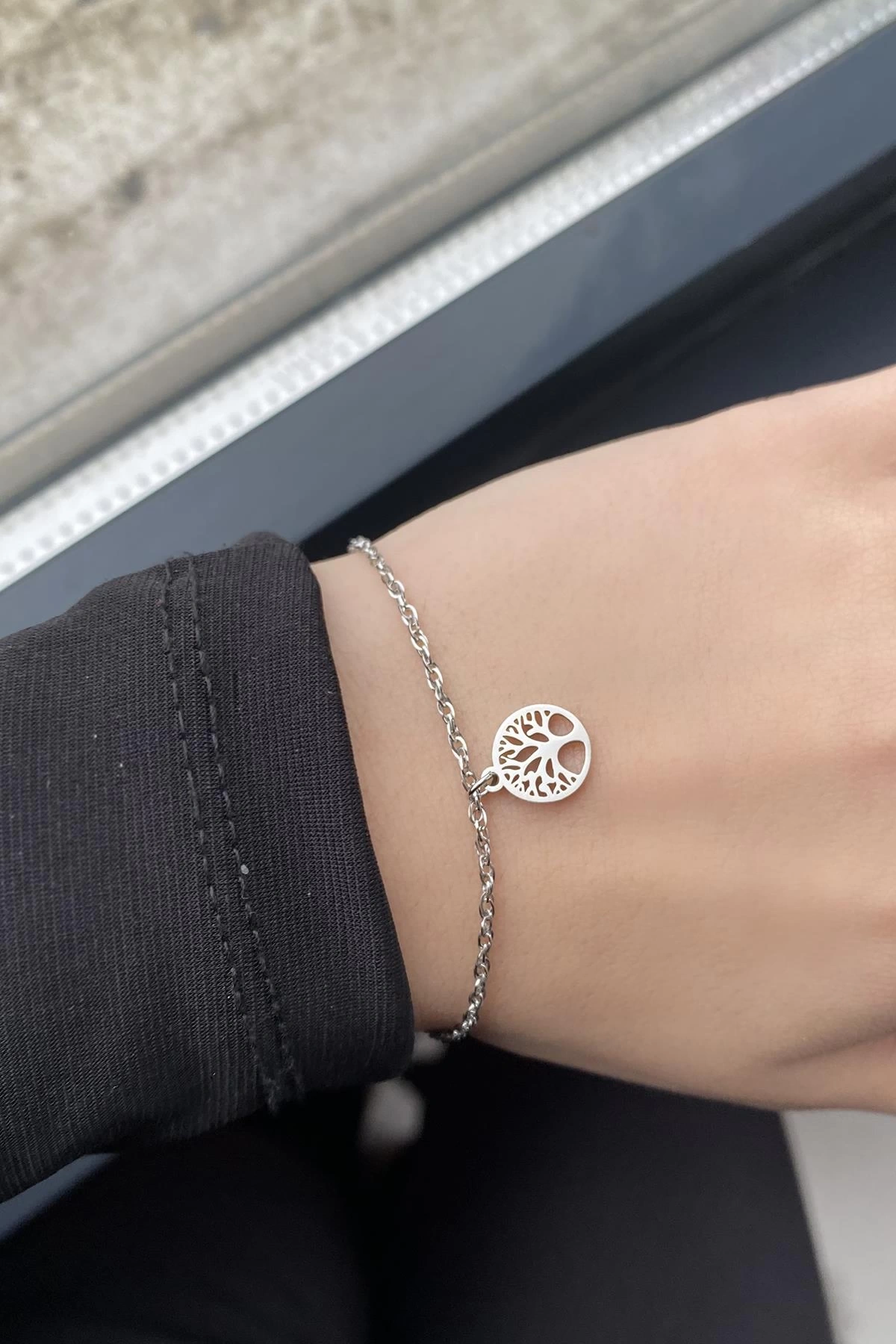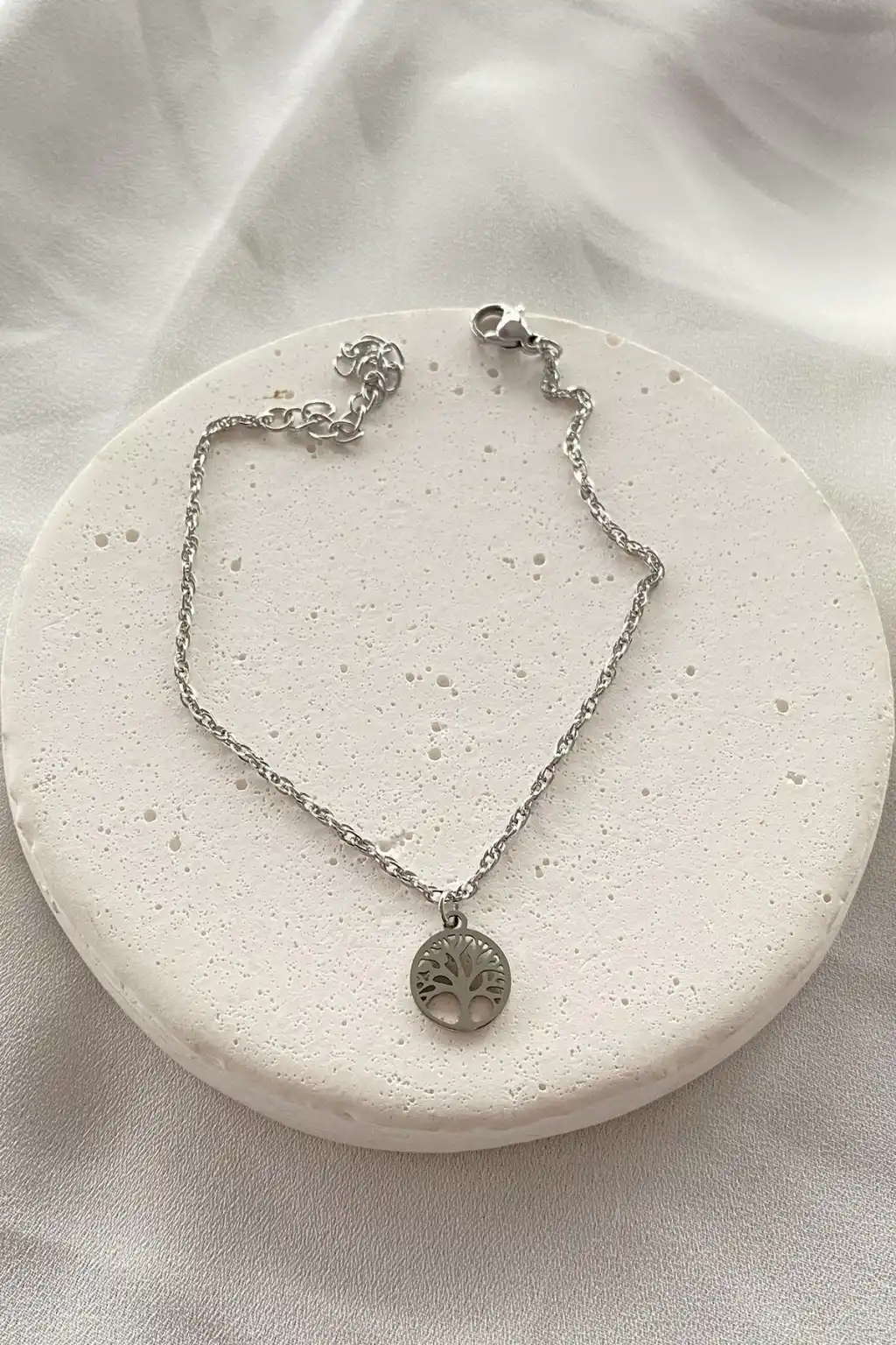 Gümüş Renk Hayat Ağacı Figürlü Çelik Bileklik