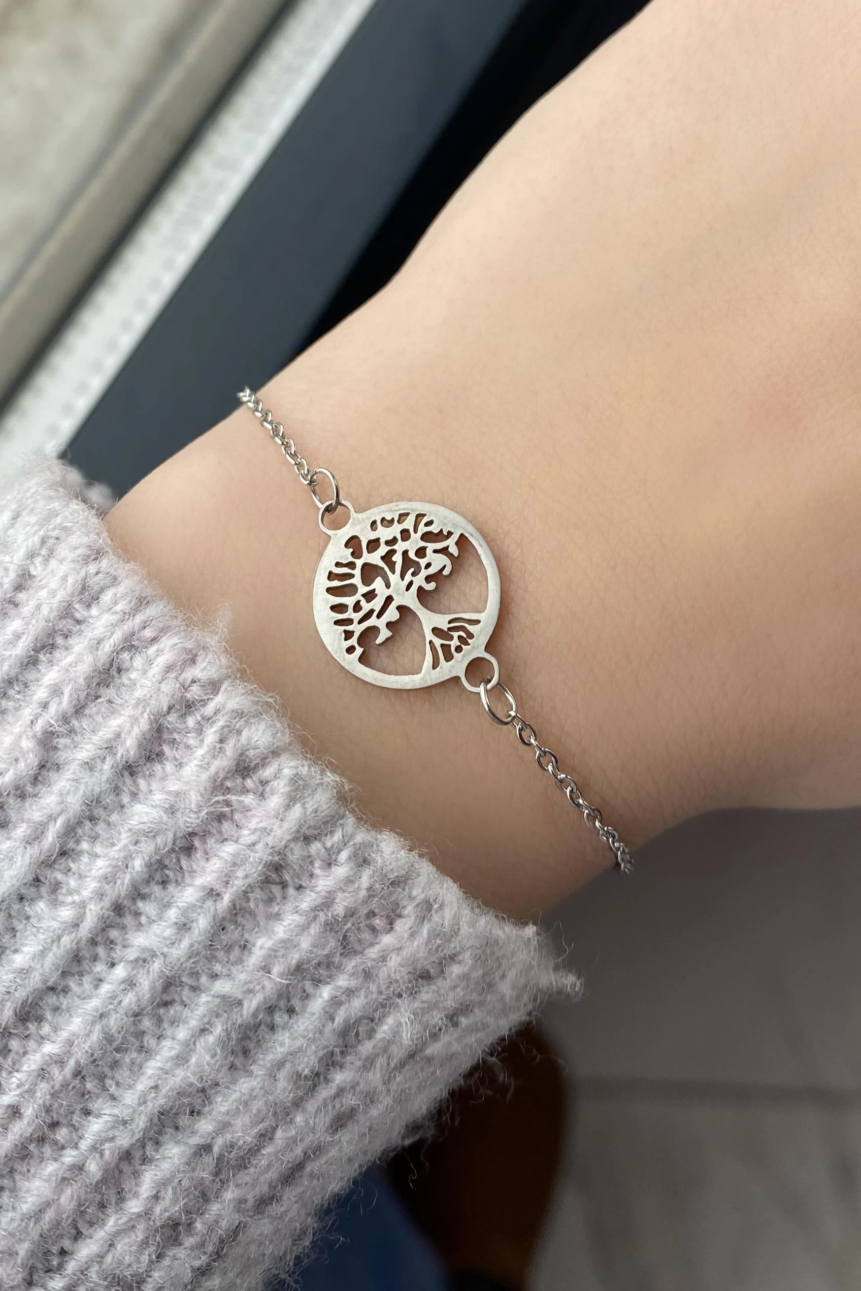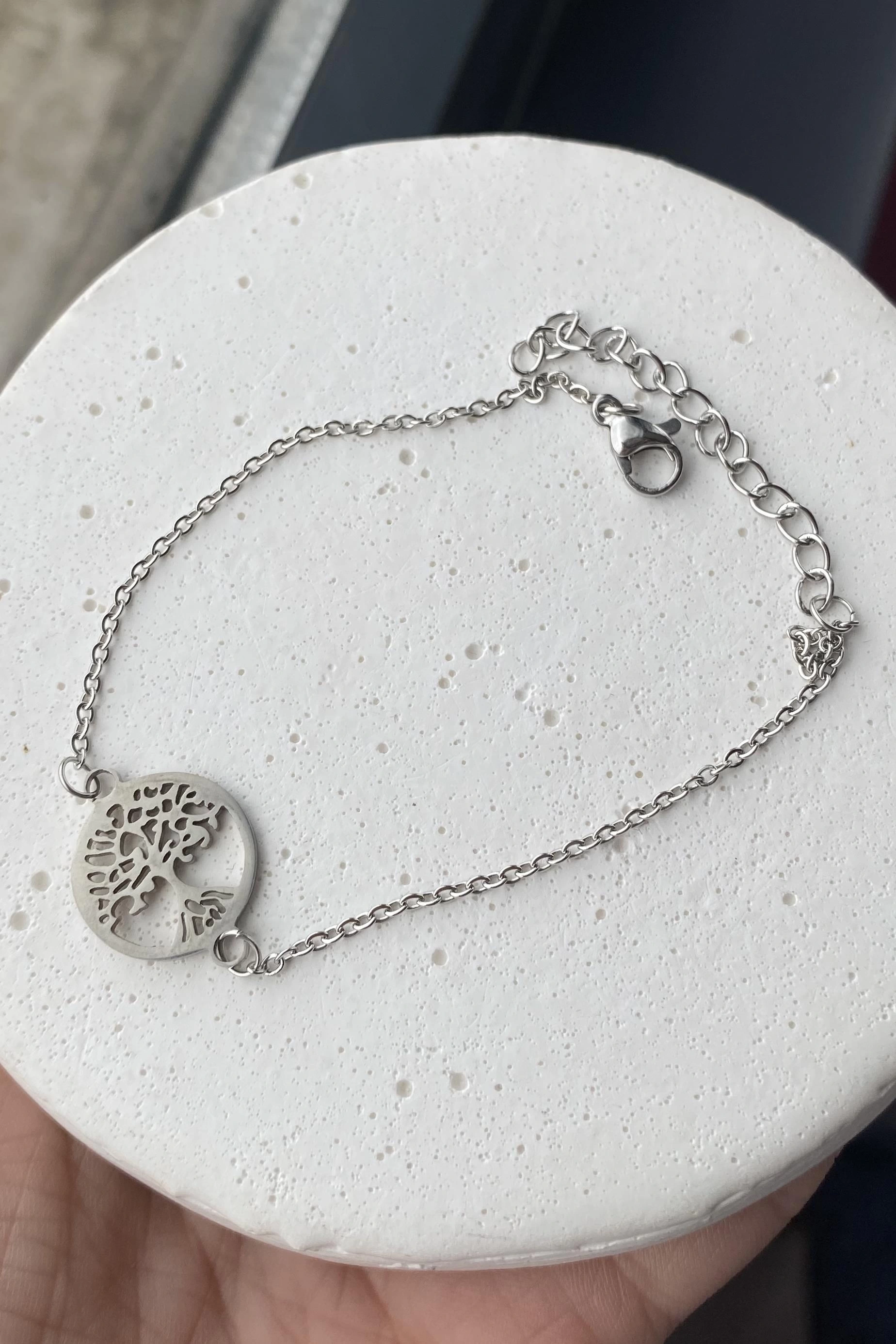 Gümüş Renk Hayat Ağacı Figürlü Çelik Bileklik