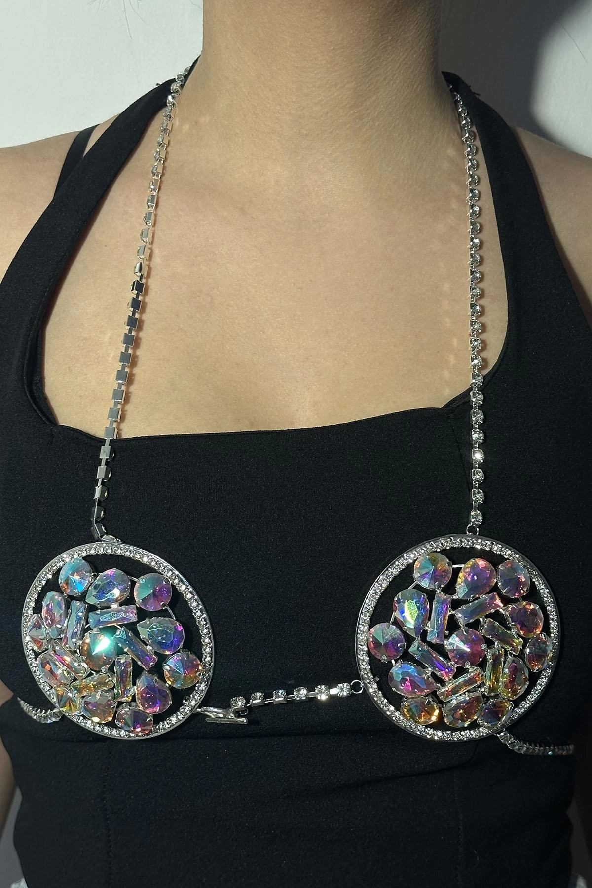 Gümüş Renk Hologram Taş Detaylı Göğüs Aksesuarı