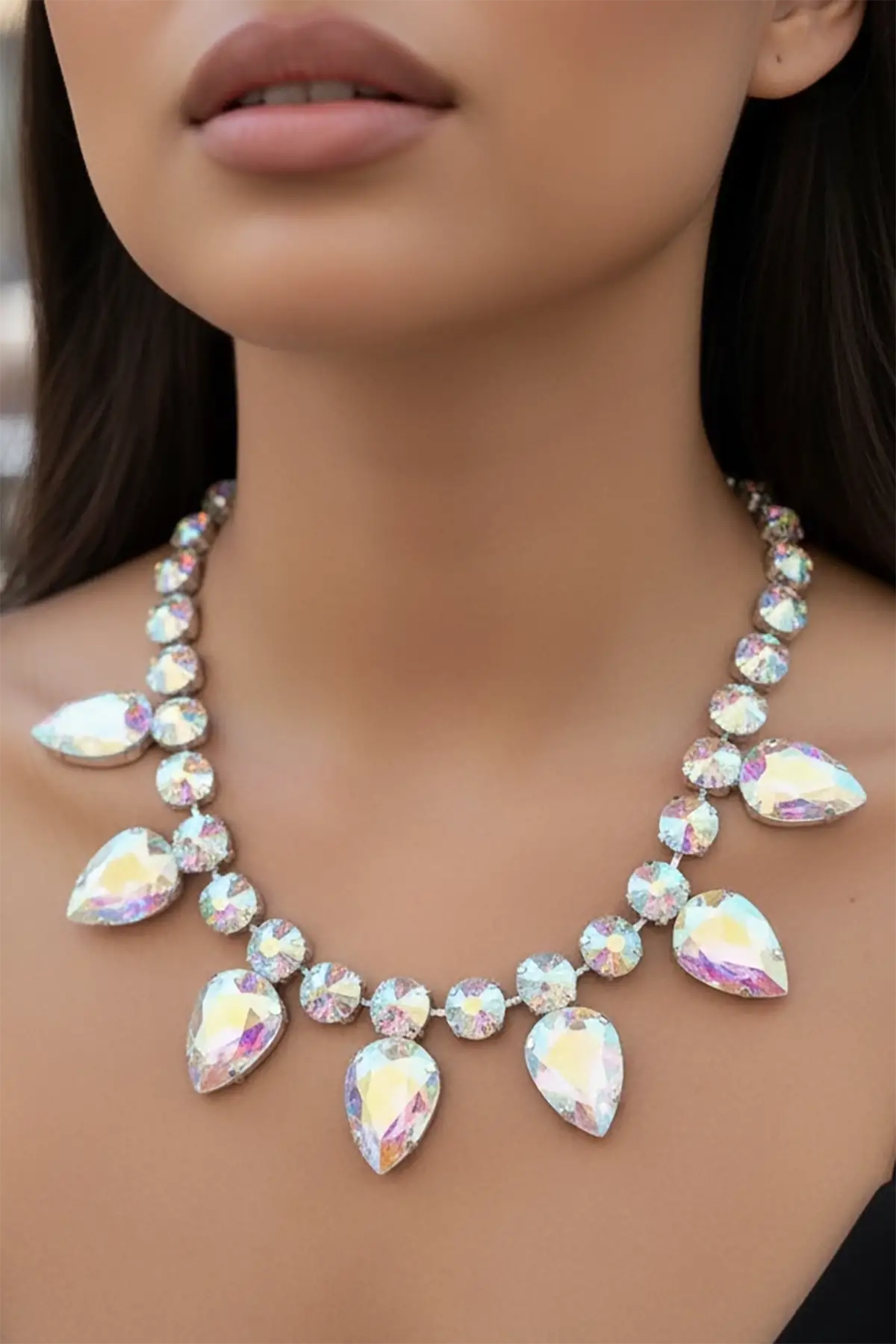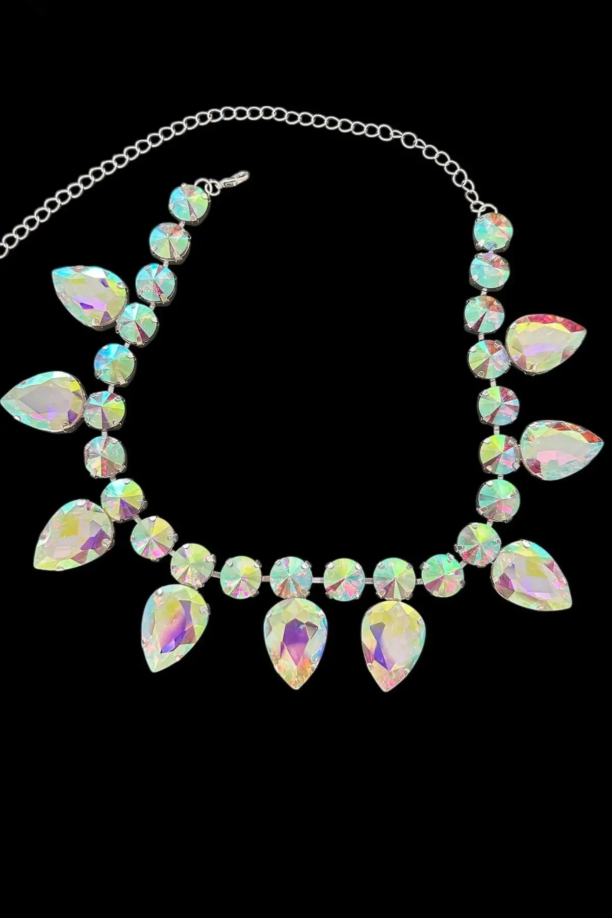 Gümüş Renk Hologram Taş Detaylı Tasarım Abiye Kolye