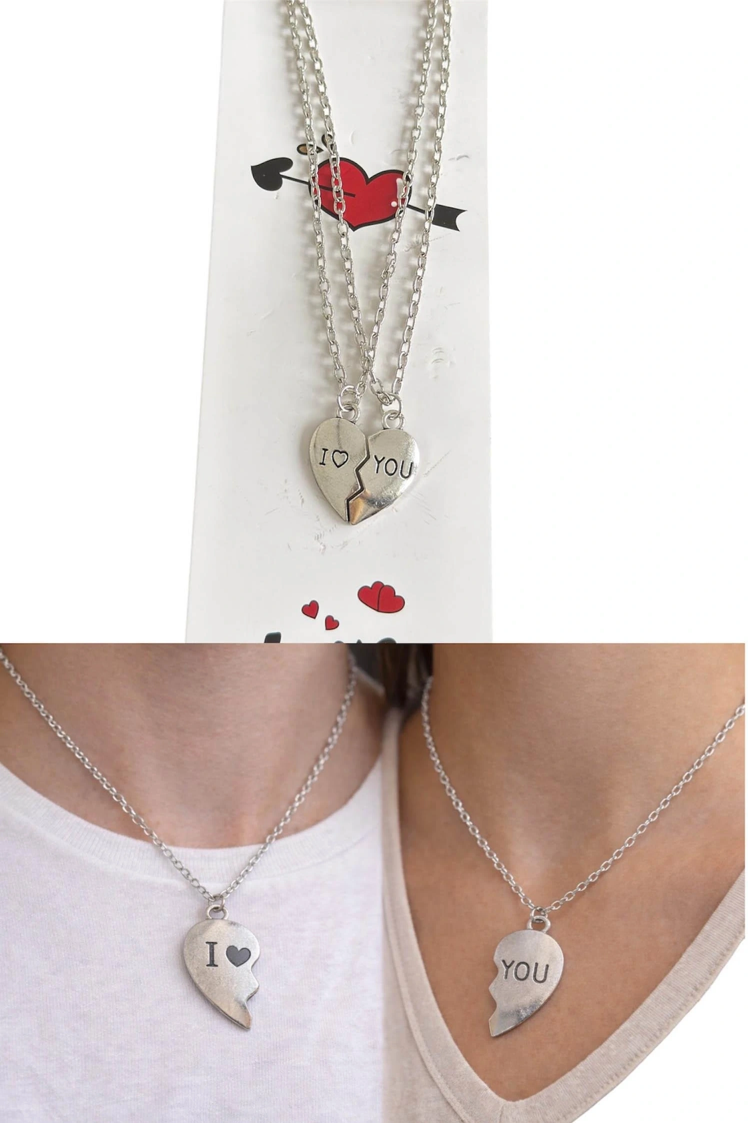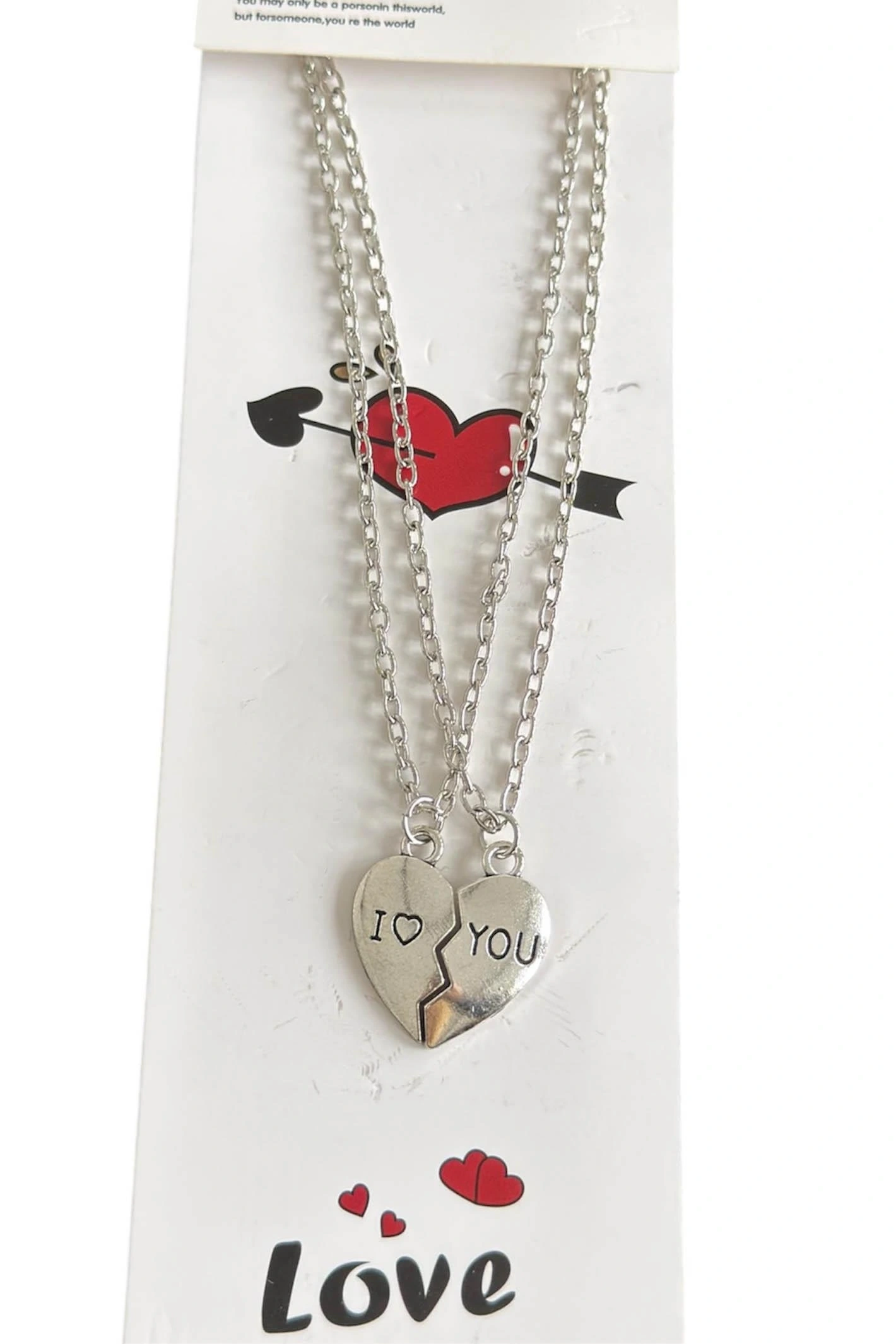 Gümüş Renk I Love You Yazılı İkili Çift Çelik Kolye