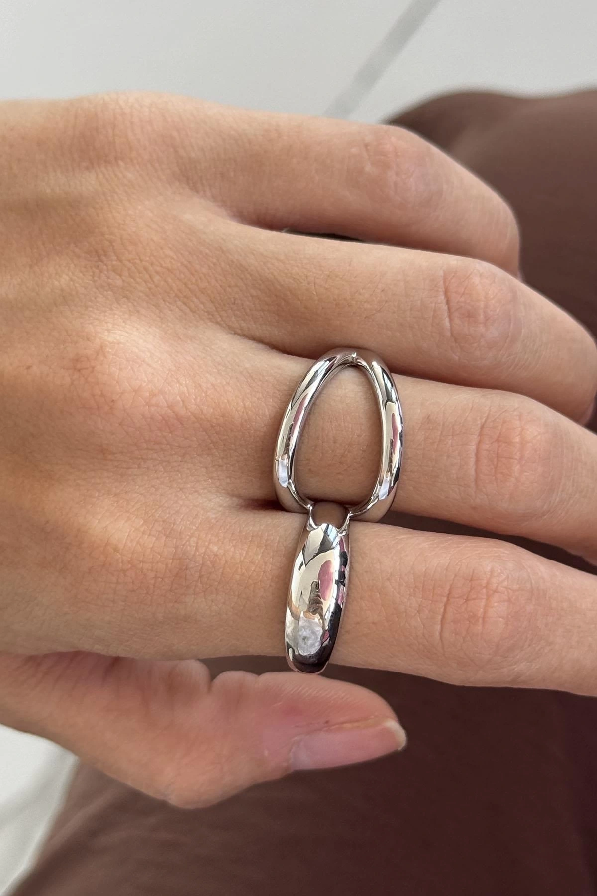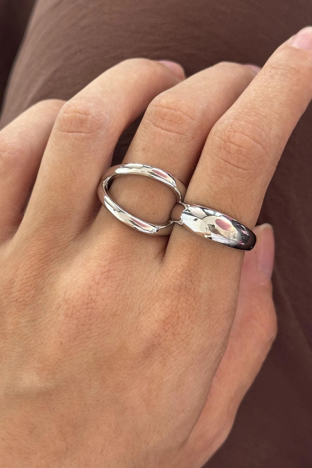 Gümüş Renk İkili Ayarlanabilir Tasarım Yüzük