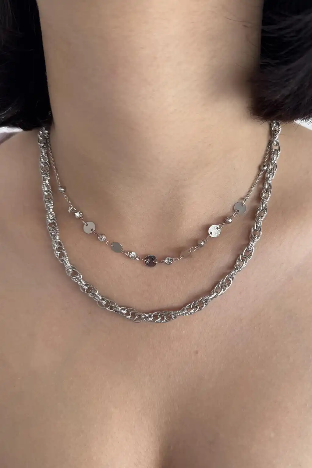Gümüş Renk İkili Kolye