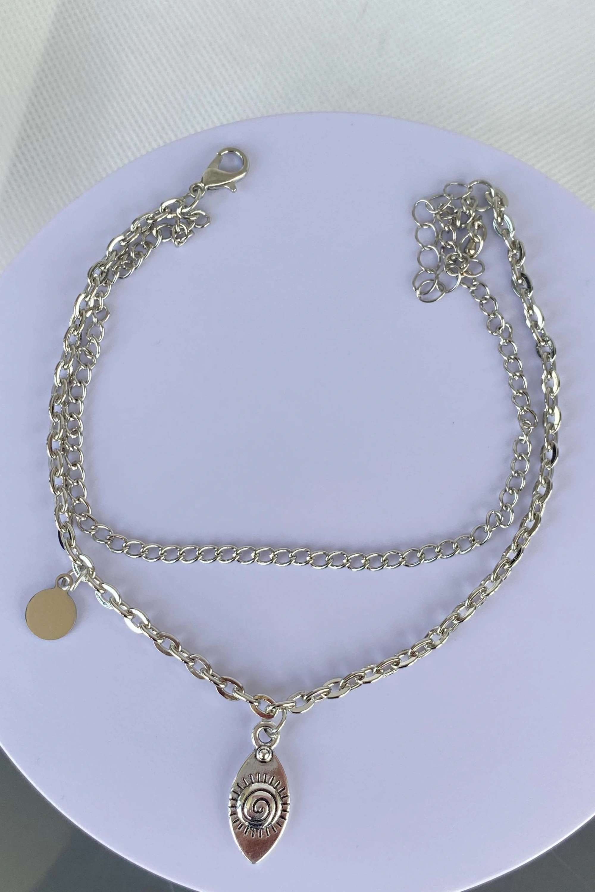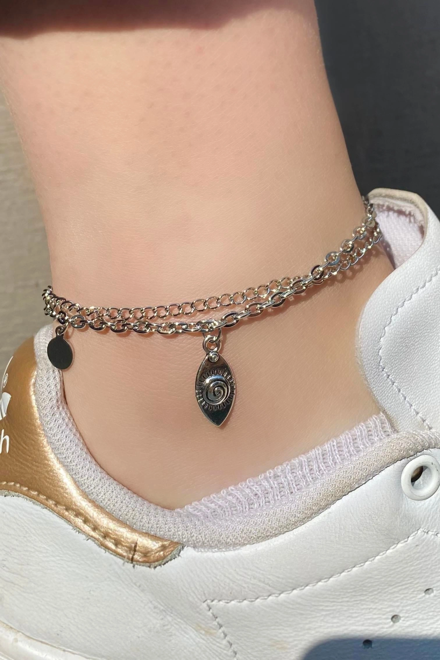 Gümüş Renk İkili Zincir Detaylı Halhal