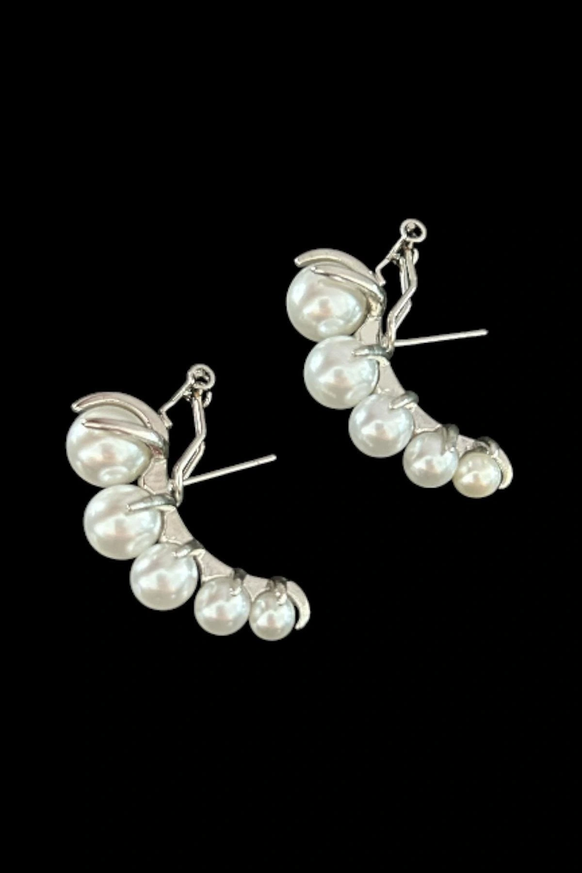 Gümüş Renk İnci Detaylı Çelik Küpe (Çift)