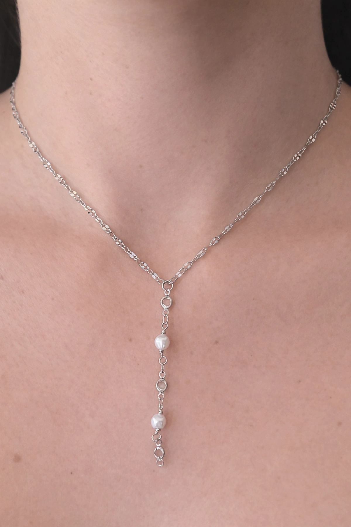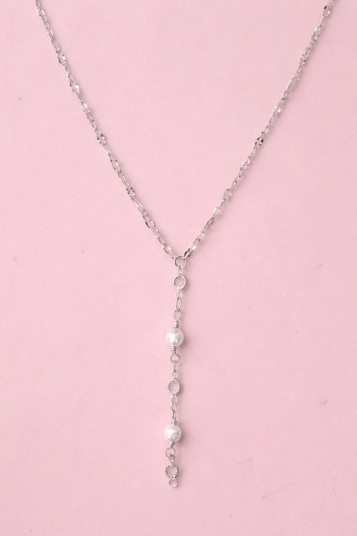 Gümüş Renk İnci Detaylı Çelik Y Kolye