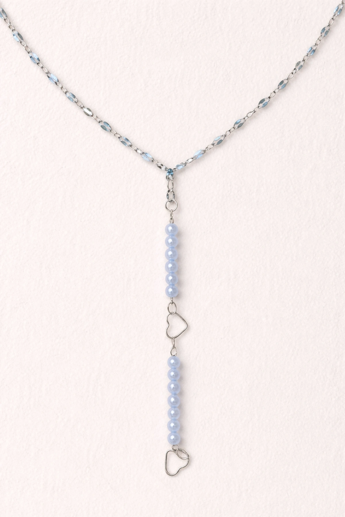 Gümüş Renk İnci Detaylı Çelik Y Kolye