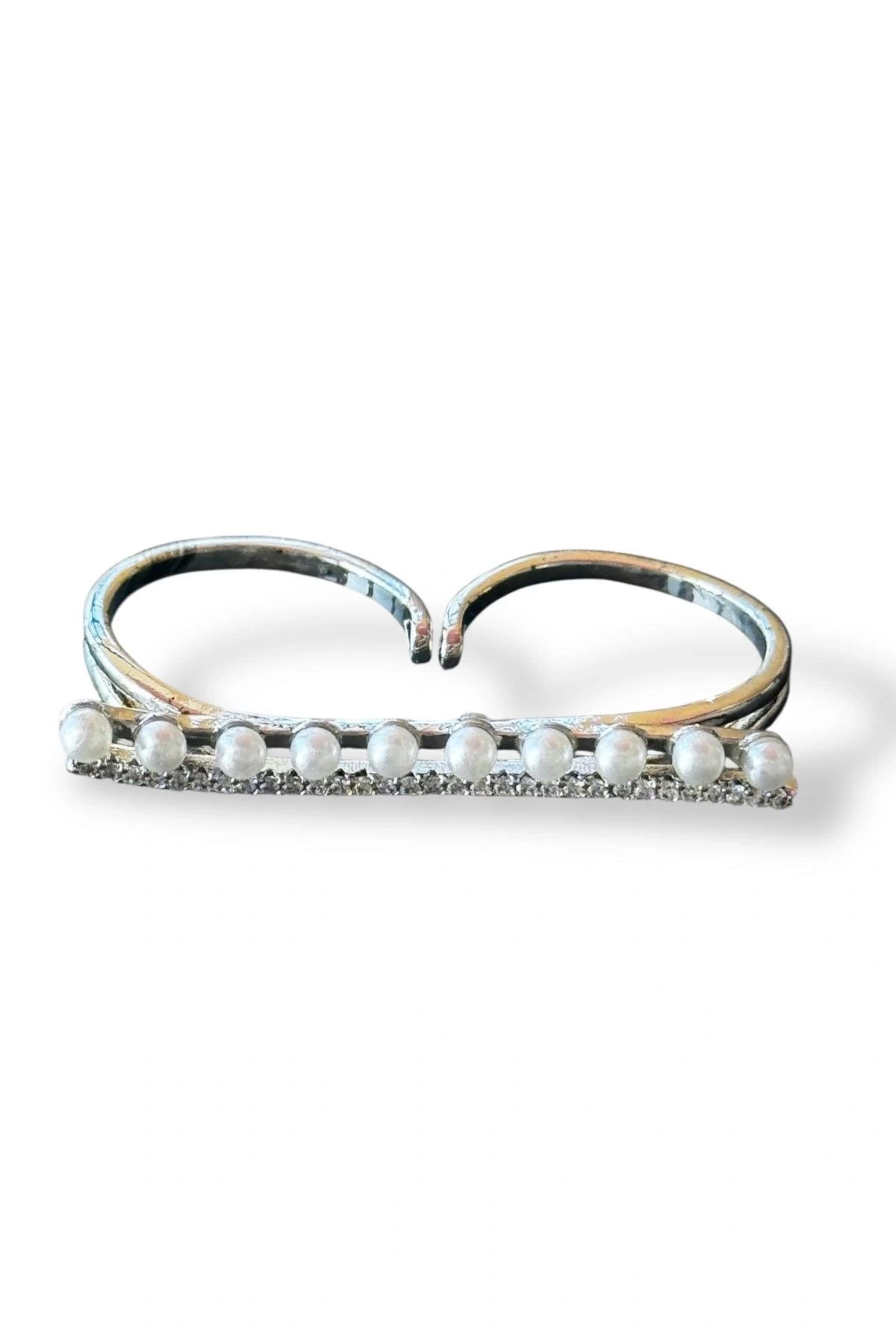 Gümüş Renk İnci Detaylı İkili Tasarım Yüzük